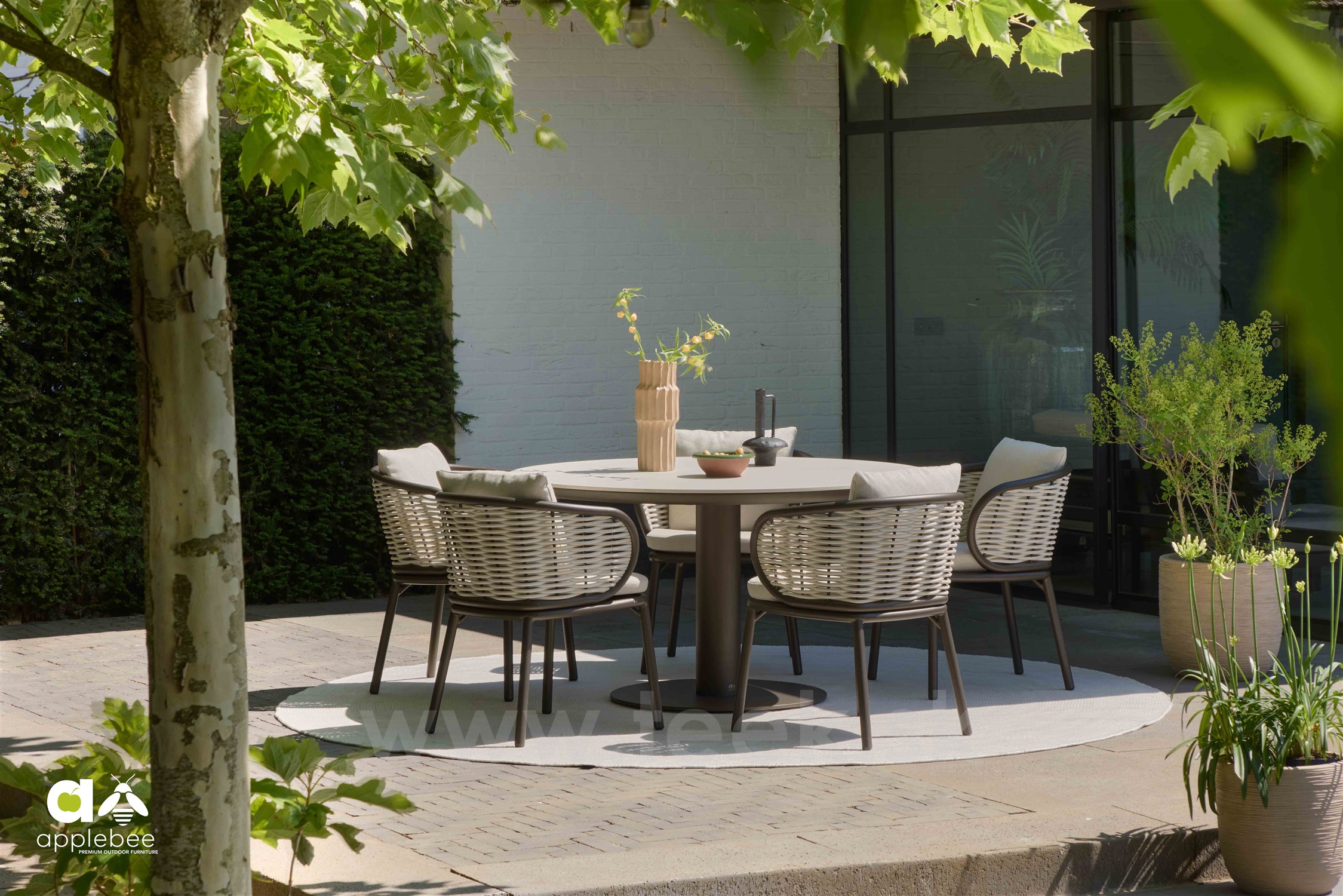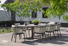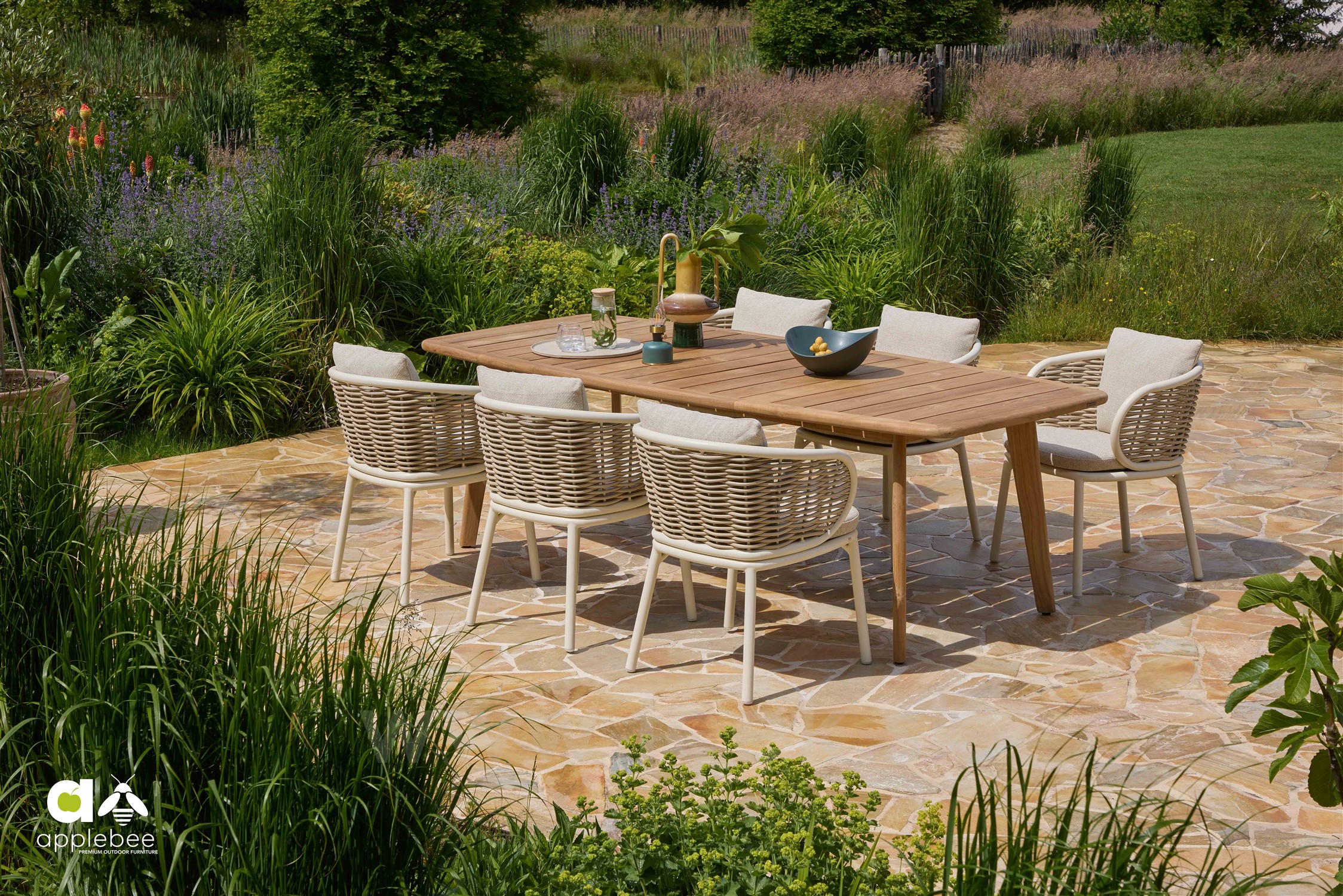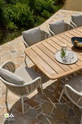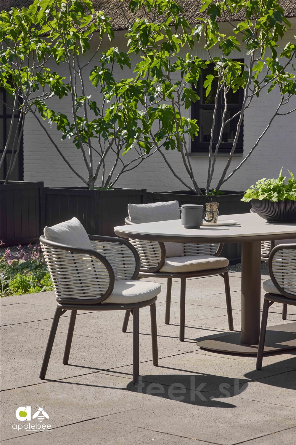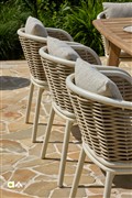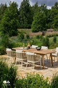 Štýlové jedálenské stoličky Pine Key od Apple Bee na vonkajšie použitie.
