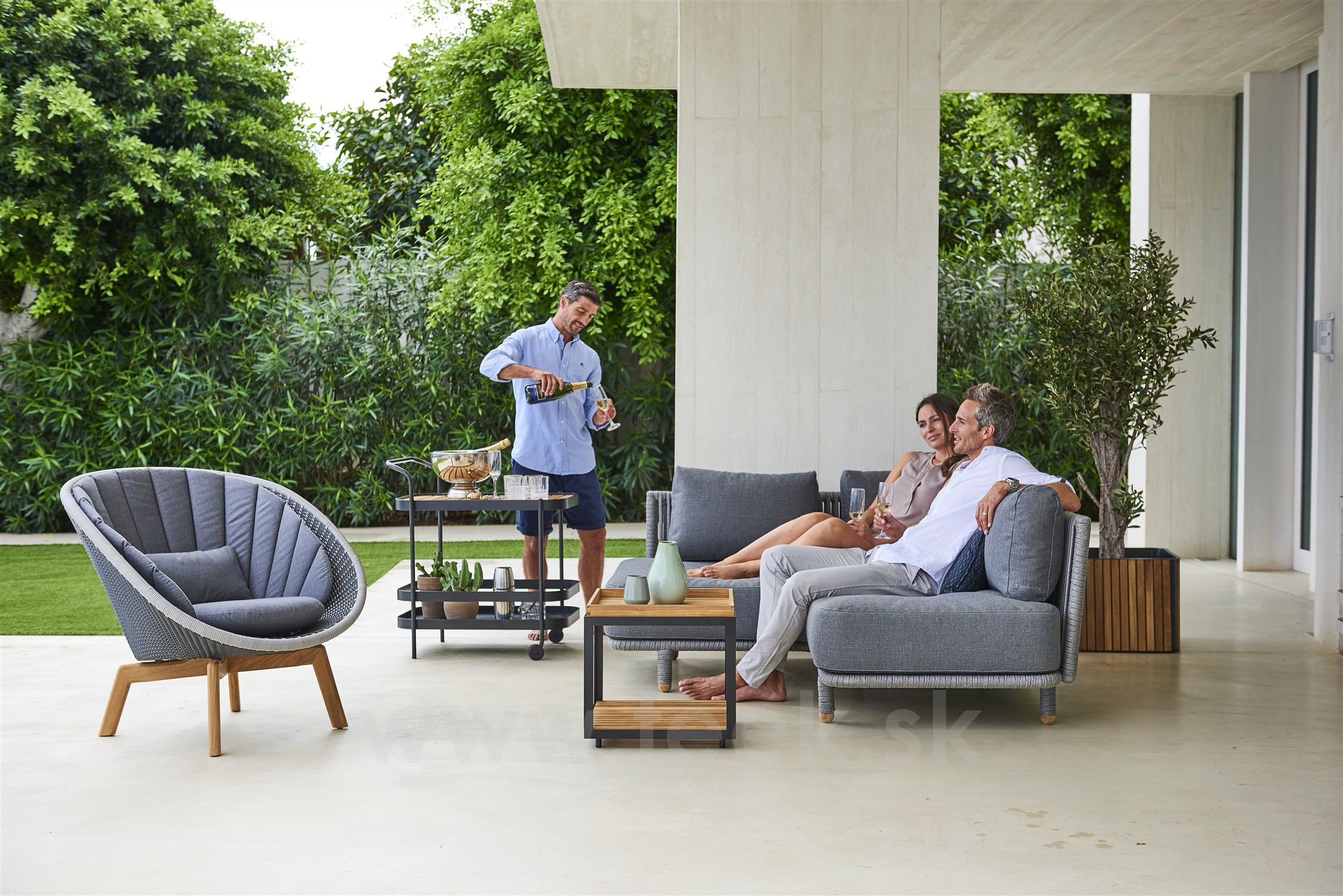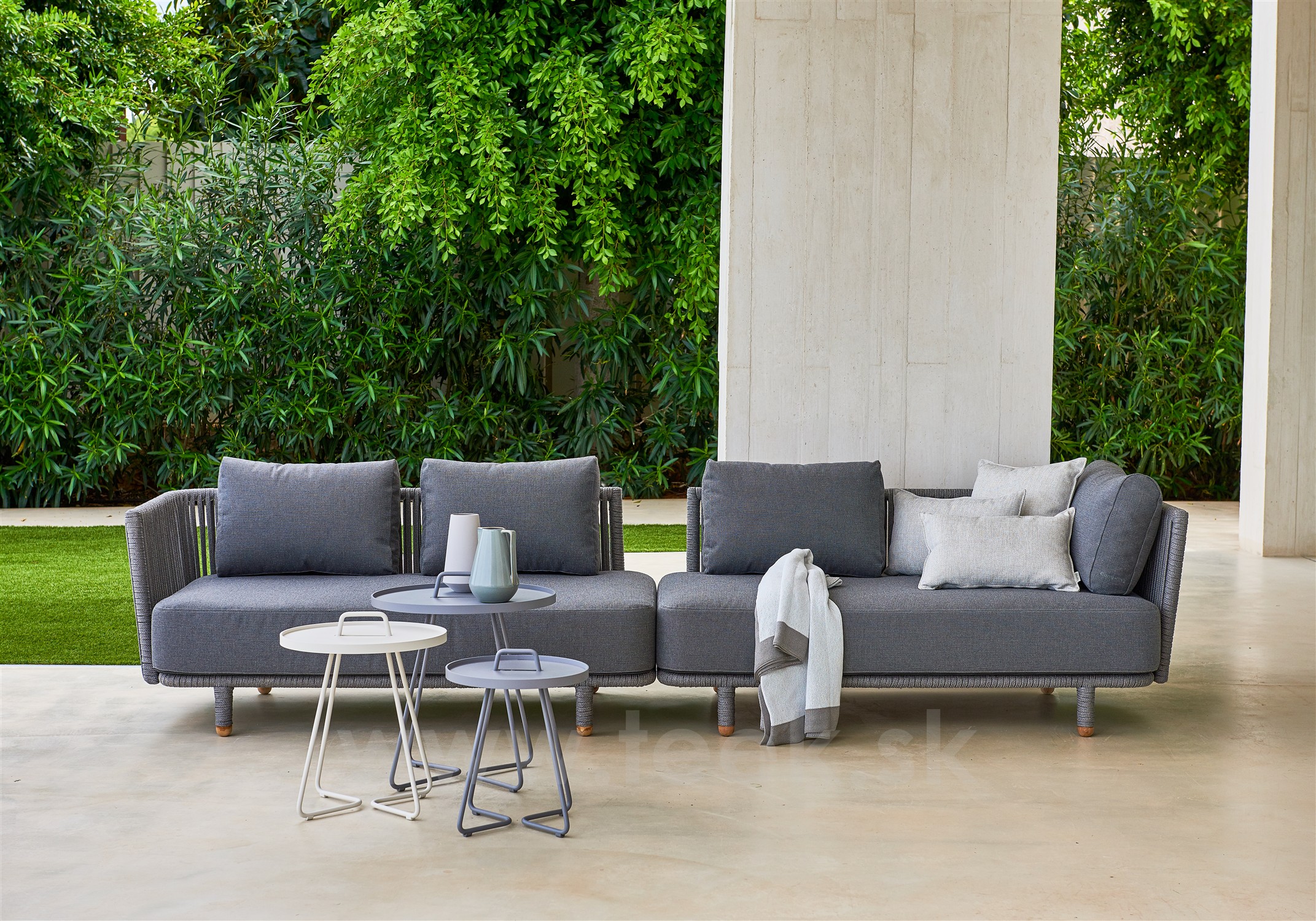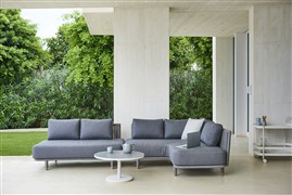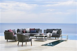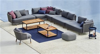 Obľúbená vonkajšia kolekcia Moments Lounge od Cane -line. Kolekciu je možné kombinovať s jedálenským vonkajším nábytkom