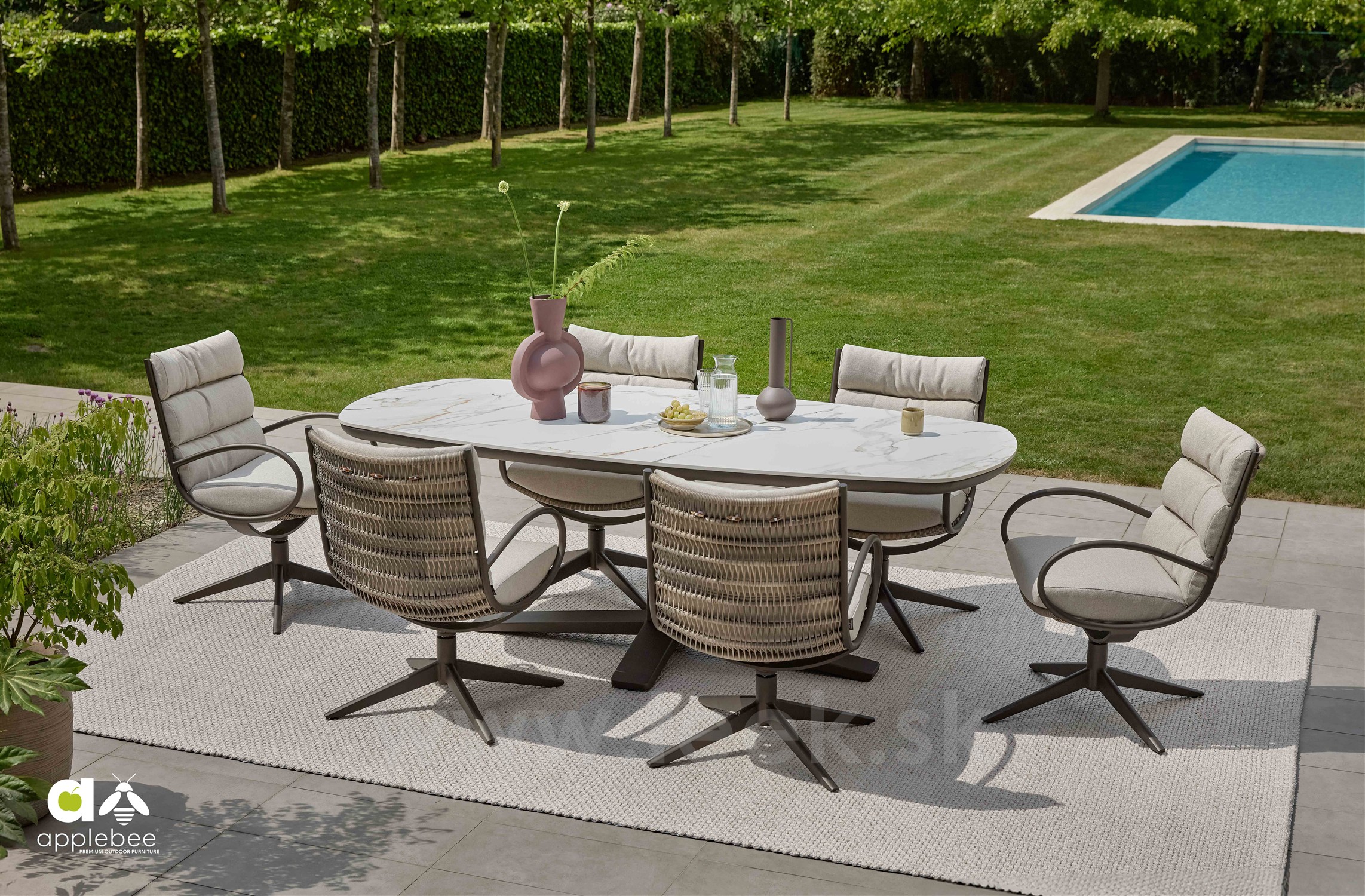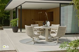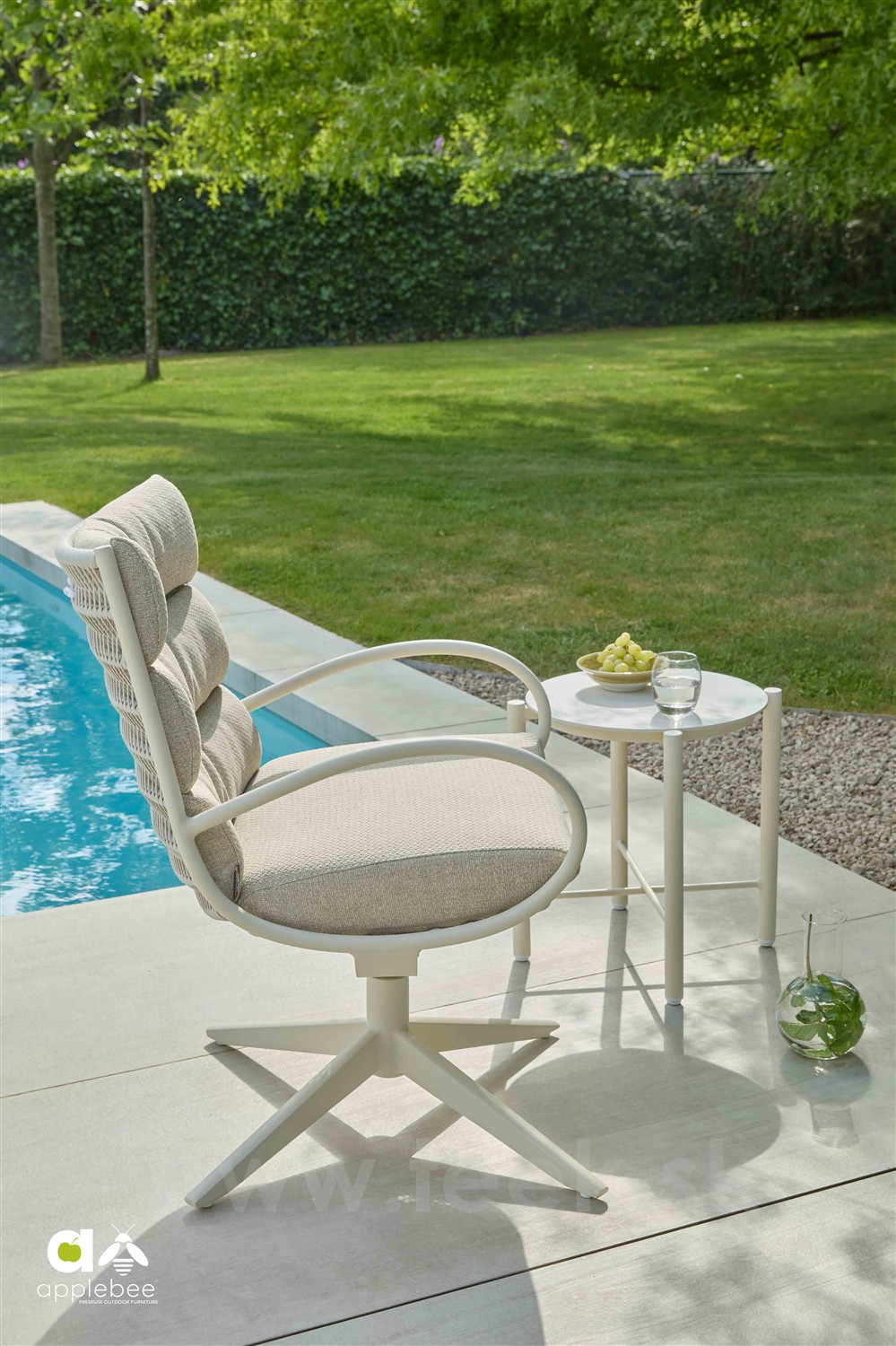 Štýlové vonkajšie otočné kreslo s nastaviteľnou výškou sedadla.