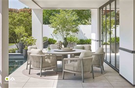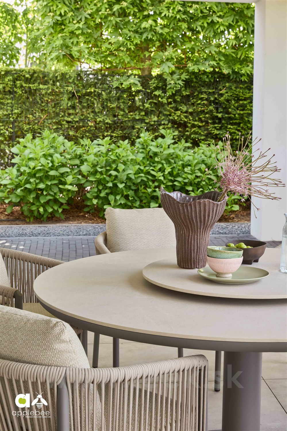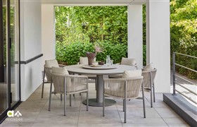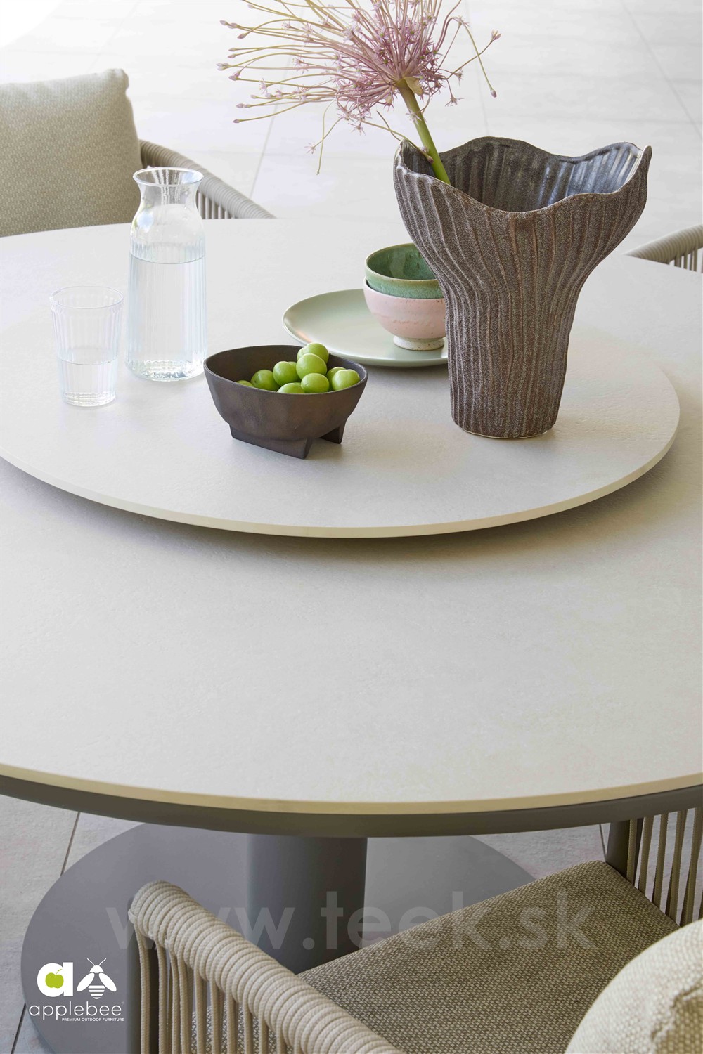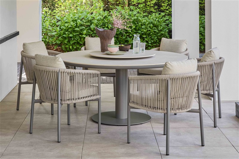 Okrúhle a oválne vonkajšie jedálenské stoly Melville s klasickou aj zníženou výškou od Apple Bee.