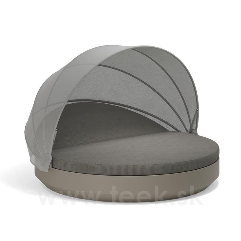 Denní postel kulatá se sklápěcí stříškou a polohovací zádovou opěrkou Vela, Vondom, 222x216x156 cm, matt polyethylen, matrace venkovní látka Group 1A a 1B, barevné provedení dle vzorníku
