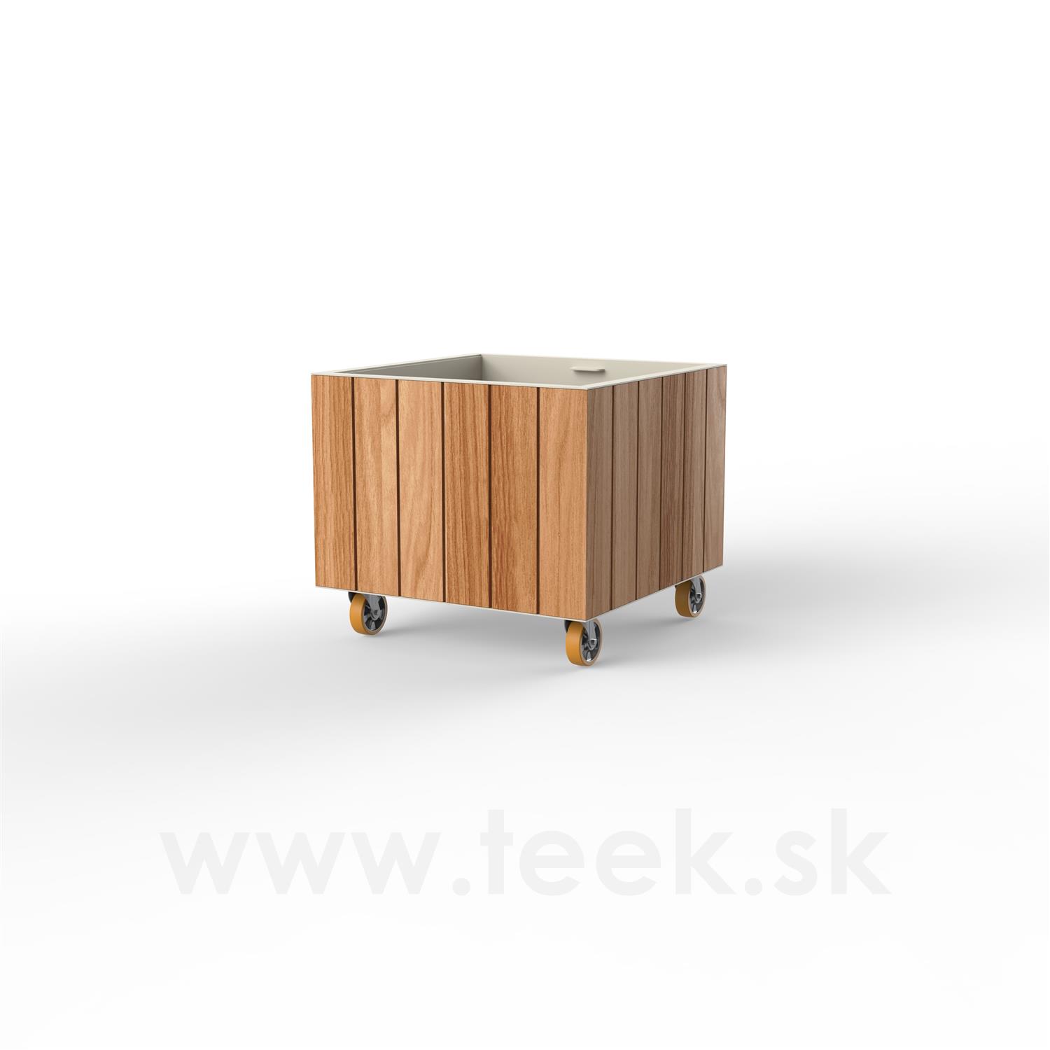 Kvetináč na kolieskach Vineyard, Vondom, štvorec 80x80x71 cm, lakovaný hliník, teakové drevo, farba podľa vzorkovníka