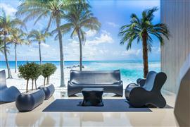 Vonkajšie jedálenské a nízke sedenie z kolekcie Pal od španielskej značky Vondom.