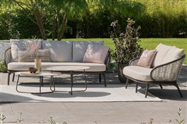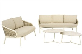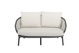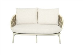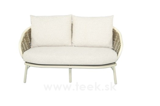 2-miestna pohovka Pine Key, Apple Bee, 145x83,5x79 cm, rám hliník Oyster (krémová), výplet umelý ratan Seashell, sedáky vonkajšia látka Cotton Flower