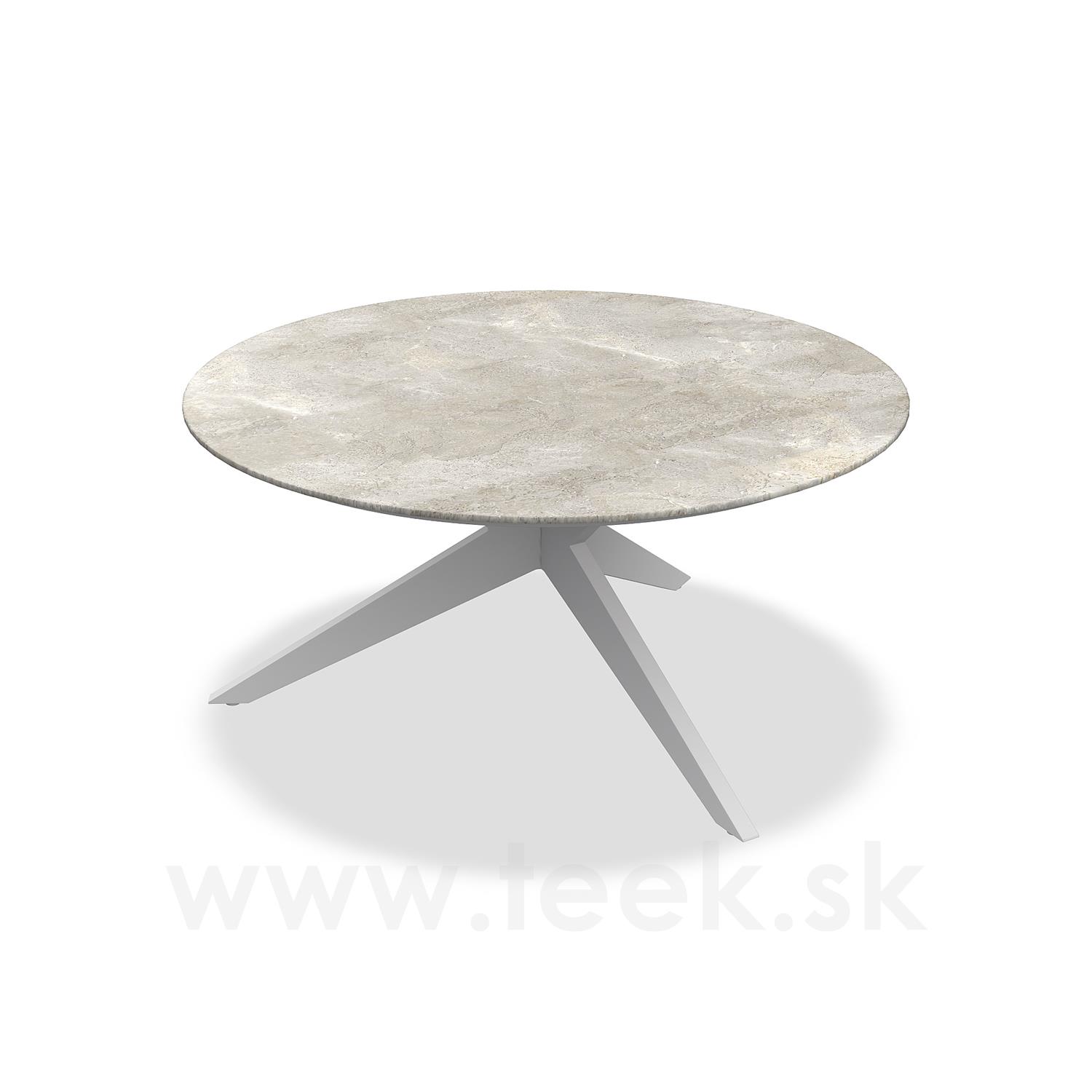 Jídelní stůl Yate, Jati Kebon, kulatý 150x72,6 cm, rám hliník barva white mat, deska keramika 12mm dekor Paladium Grey