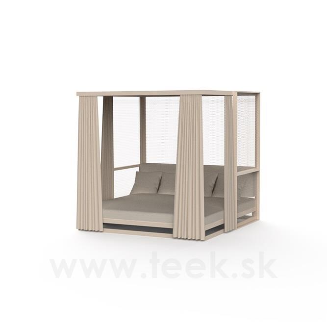 Denná posteľ s baldachýnom The Factory, Vondom, 212x206x200 cm, hliníkový rám, farba podľa vzorkovníka, závesy a matrace z vonkajšej tkaniny skupiny 1A a 1B farba podľa vzorkovníka