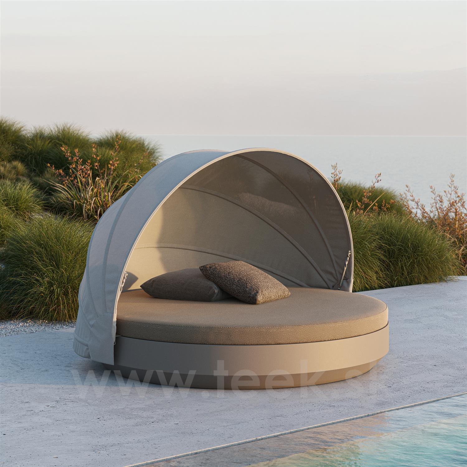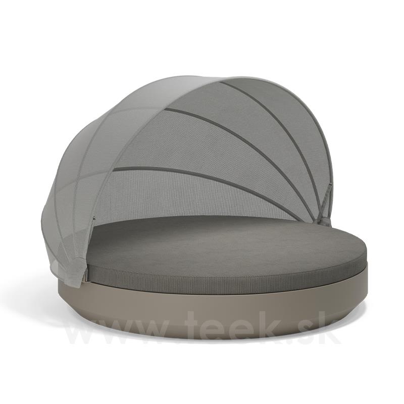 Okrúhla denná posteľ so skladacou strieškou Vela, Vondom, 222x216x156 cm, matný polyetylén, matrac z vonkajšej tkaniny skupiny 1A a 1B, farba podľa vzorkovníka