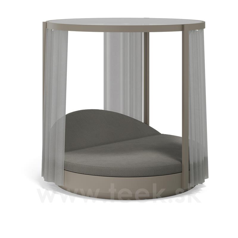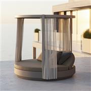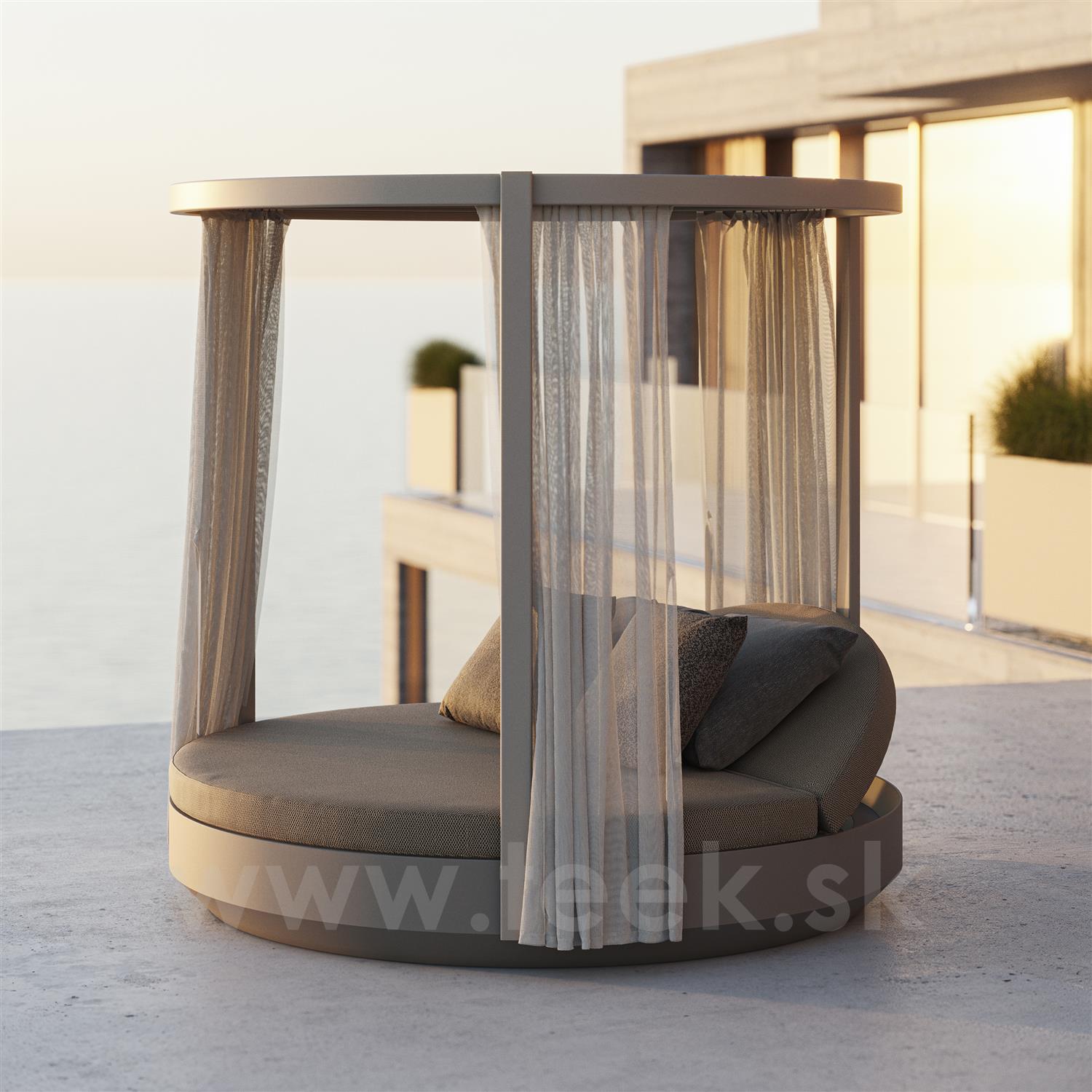 Denná posteľ okrúhla nastaviteľná so strieškou Vela, Vondom, Ø214x206 cm, rám hliník, závesy vonkajšia tkanina 100% akryl, strieška vonkajšia tkanina PVC a akryl, farba podľa vzorkovníka