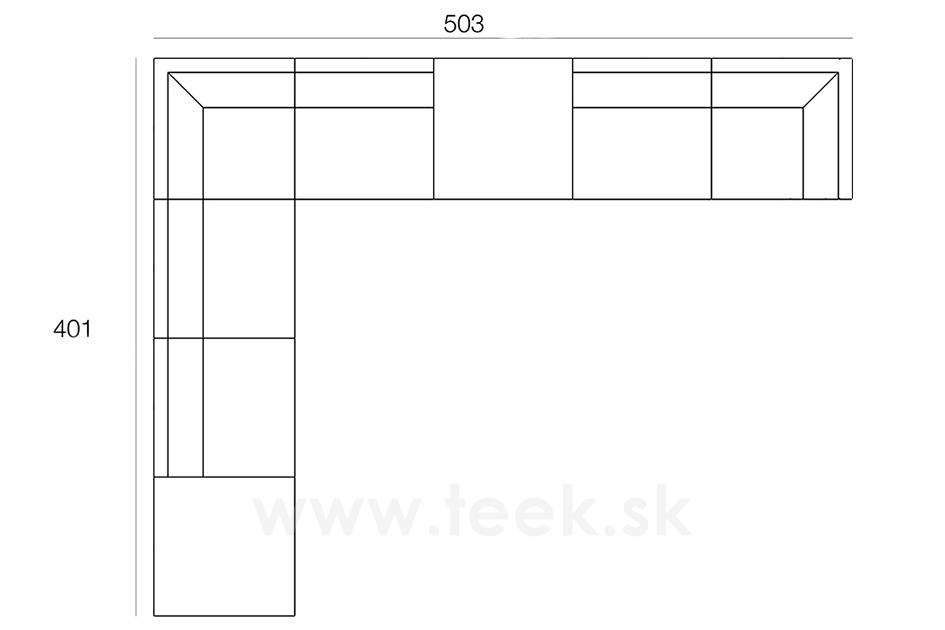 1x koncový diel ľavá strana, rozmer 101x101x63 cm