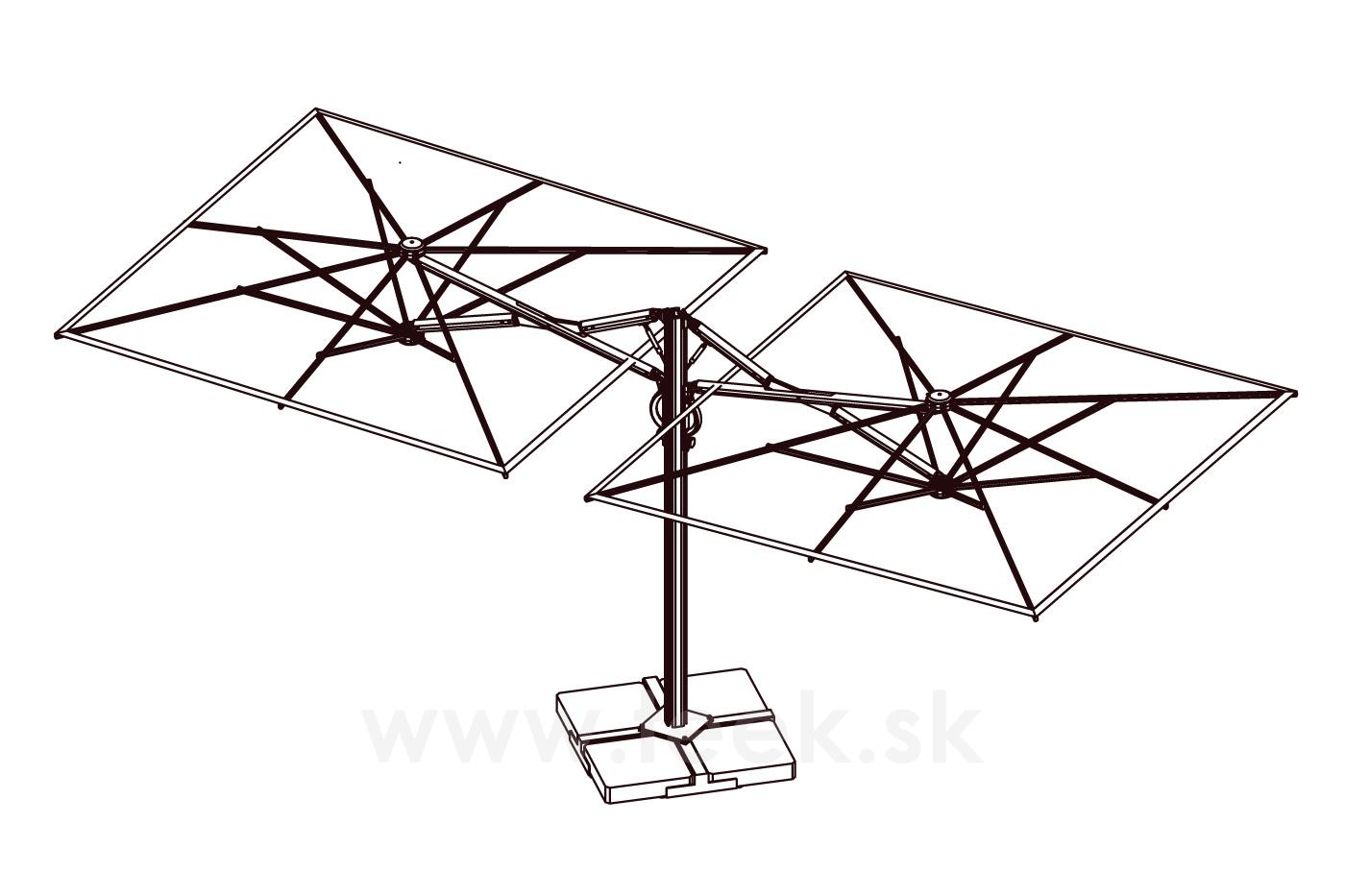 Double side umbrella Dual T, Scolaro, 600x300 cm, frame painted aluminium, Starwhite, acrylic cover 350 g/m2, colour according to swatch