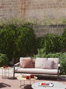 3-miestna pohovka Astra od spoločnosti Roda. Pohovka má rám z lakovaného hliníka, ktorý je pretkaný káblovým výpletom. Vankúše na sedenie sú vyrobené z kvalitnej vonkajšej tkaniny, takže pohovka môže byť vonku po celý rok bez toho, aby ste ju museli chrániť pred dažďom.