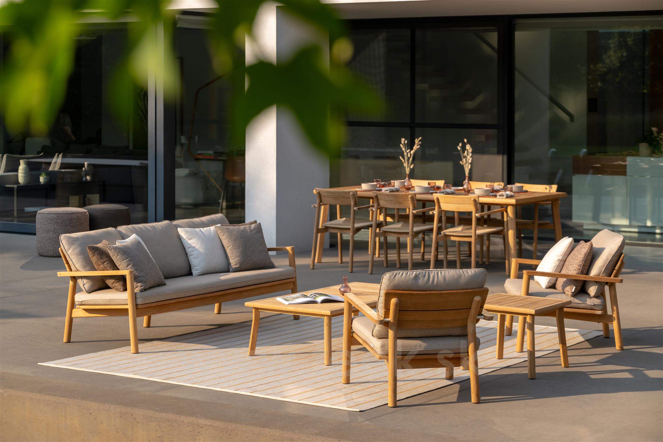 Teak 3-seater sofa from the Lynn Teak collection by Belgian brand Jati Kebon.