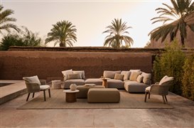 The ottoman is made with a rope weave and is suitable for outdoor use.