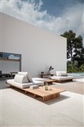 Modulový díl s odkládacím stolkem Deck, Gloster, 261x125x99 cm, rám teak, včetně sedáku, setu opěrných polštářů a krycí plachty, venkovní látka kat. B