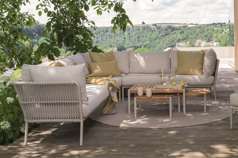 Ukončovací 2-místný díl modulové zahradní sedací sestavy Romy pravostranný.