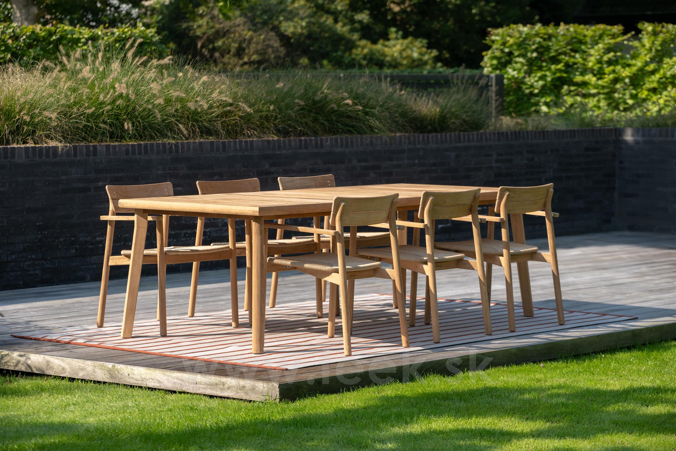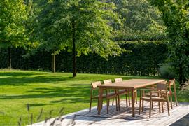 Jedálenský set z teakového dreva z kolekcie Lynn Teak belgickej značky Jati Kebon.