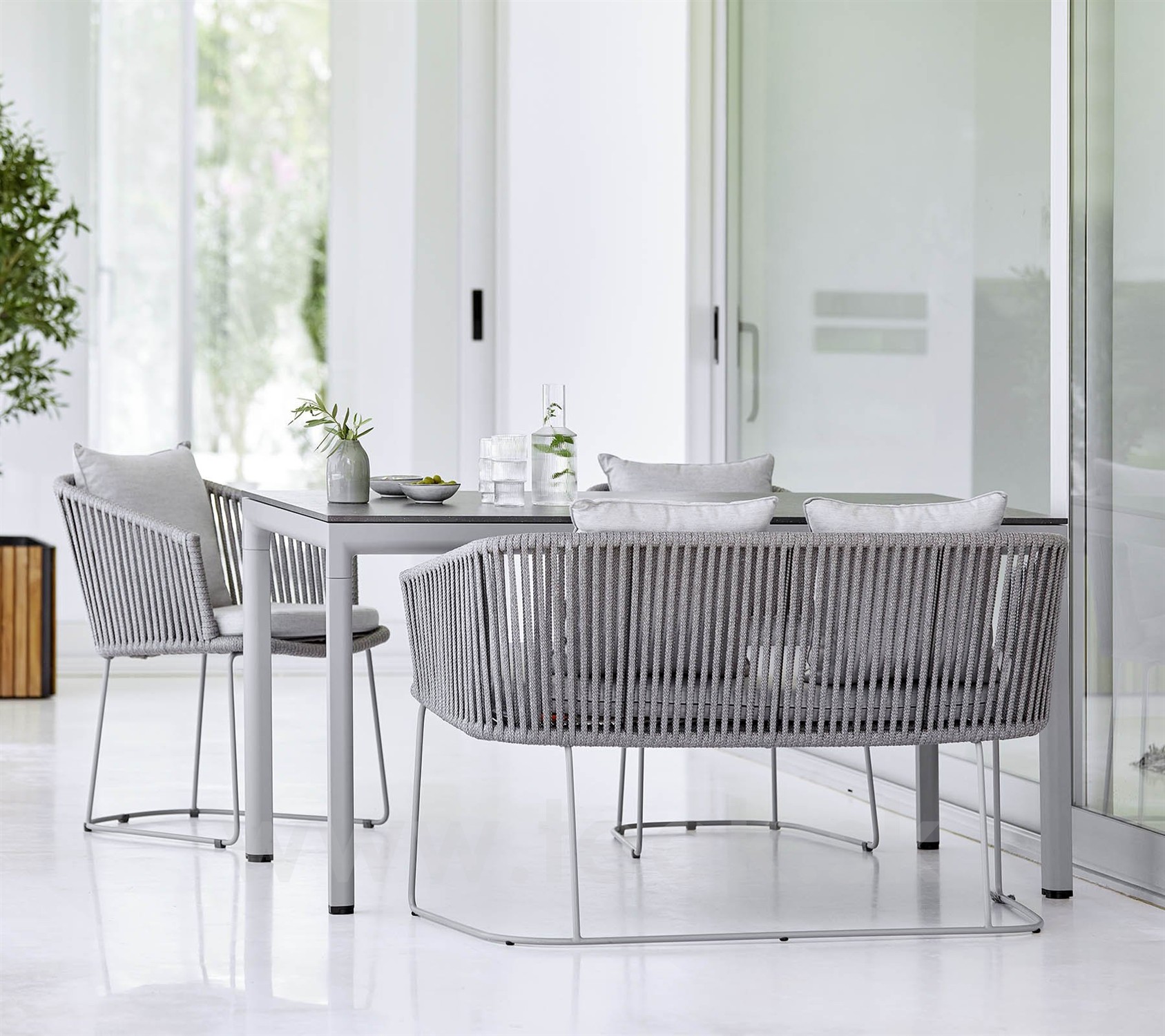 Sada podušiek pre jedálenskú lavicu Moments, Cane-line, vonkajšia látka Natté grey