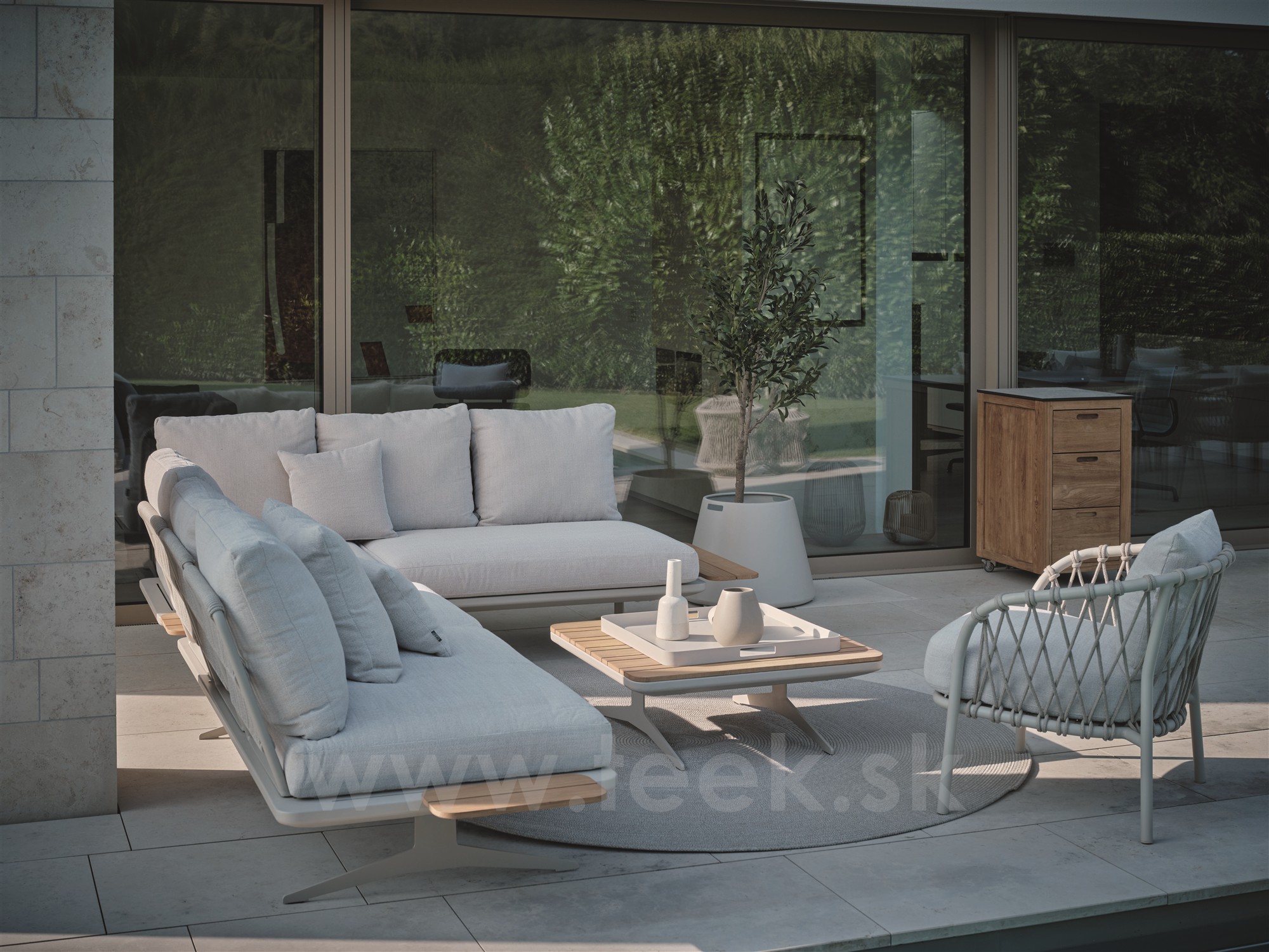- K dielu je možné dokúpiť nasadzovací prídavný teakový stolček a upevniť ho na rám.