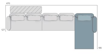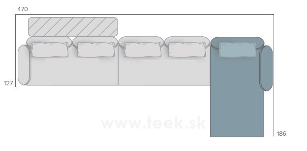 Tu je jeden z príkladov použitia jednotlivých modulov - zostavili sme rohovú súpravu 470x186 cm.