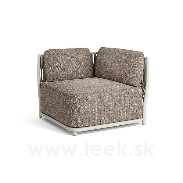 Rohový díl Cala, Jati Kebon, rám hliník barva dune mat, pásový výplet barva linnen, bez sedáků