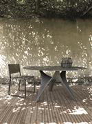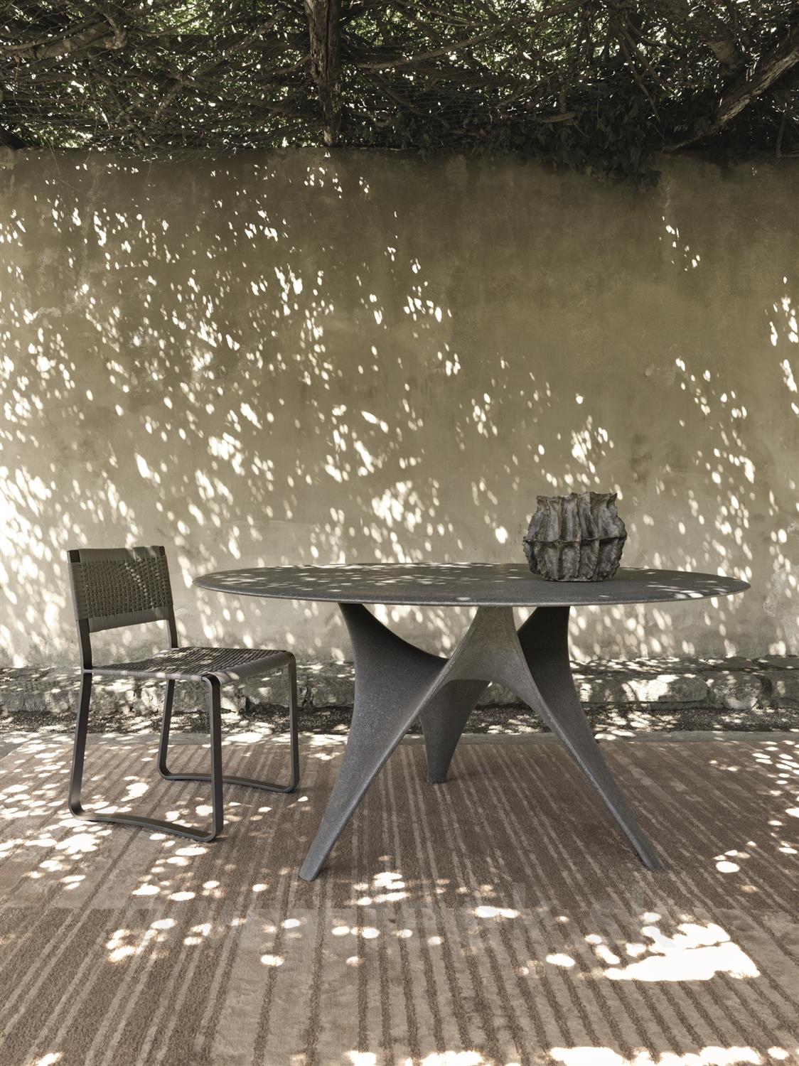 Vonkajší jedálenský stôl Arc od spoločnosti Foster + Partners je vonkajším sochárskym dielom.