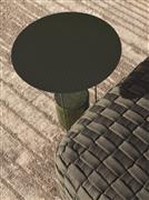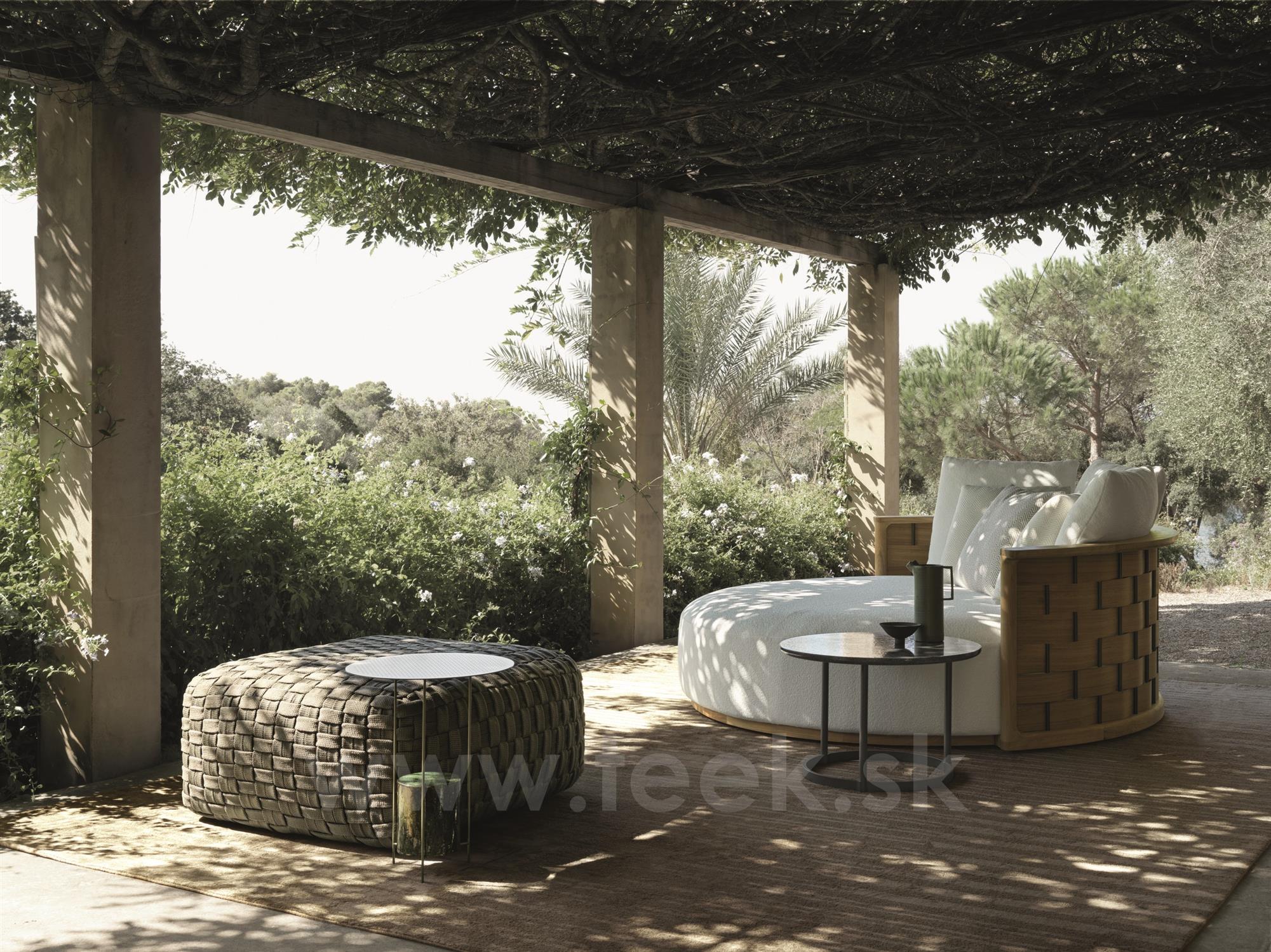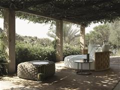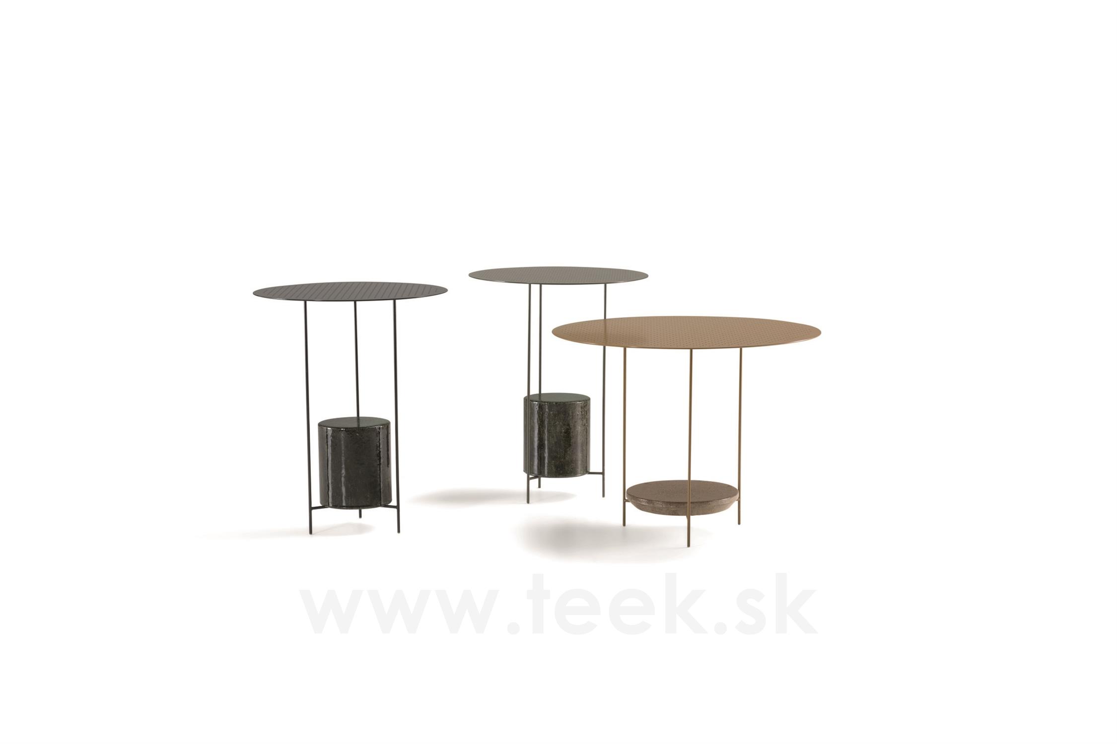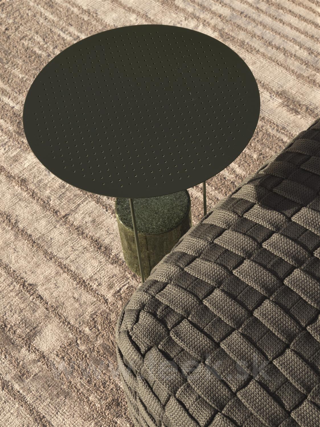 Vonkajší odkladací stolík Panna Cotta od spoločnosti Ron Gilad v sebe spája rafinovanosť a stabilitu. Kovový rám s perforovanou vrchnou časťou a podstavcom z lávového kameňa evokuje krehkú pevnosť typickú pre taliansky dezert, podľa ktorého je stôl pomenovaný.