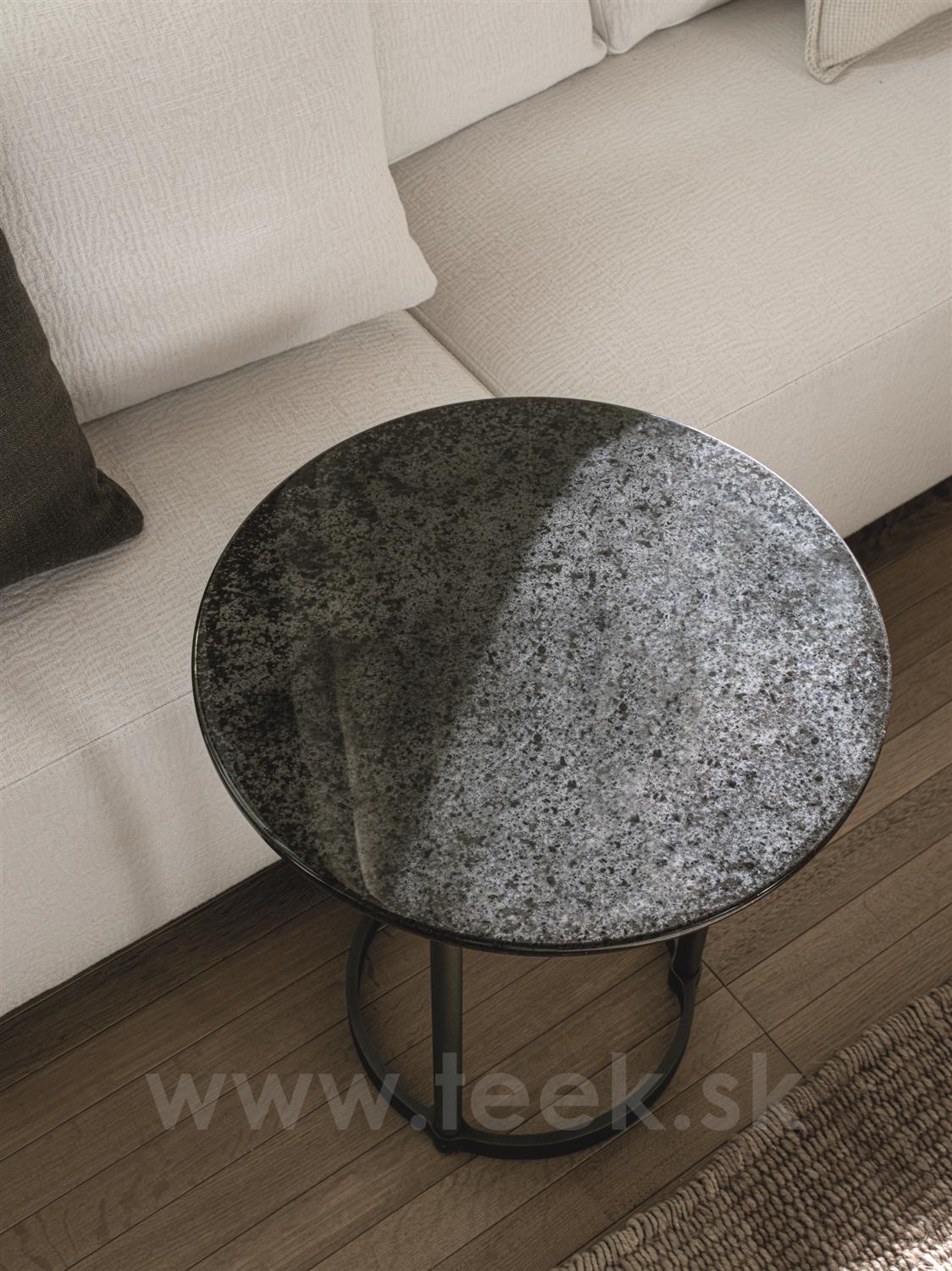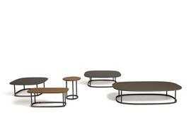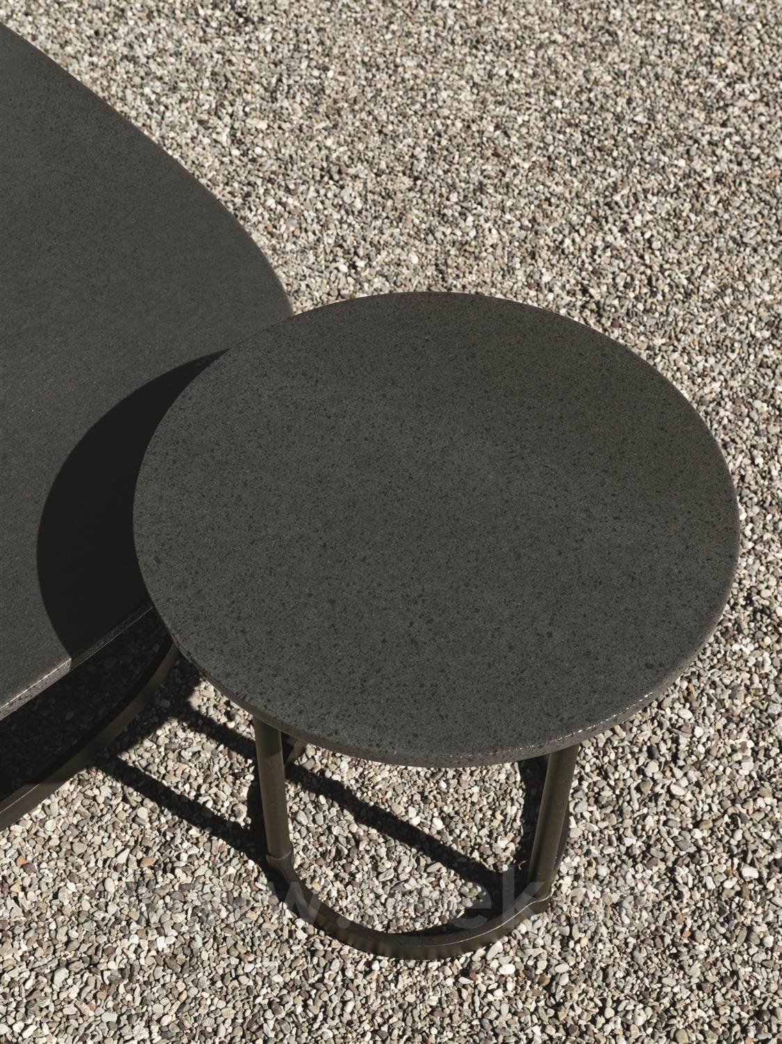 Okrúhle a oválne stoly bez okrajov s kovovým rámom a doskou z lávového kameňa Etna.