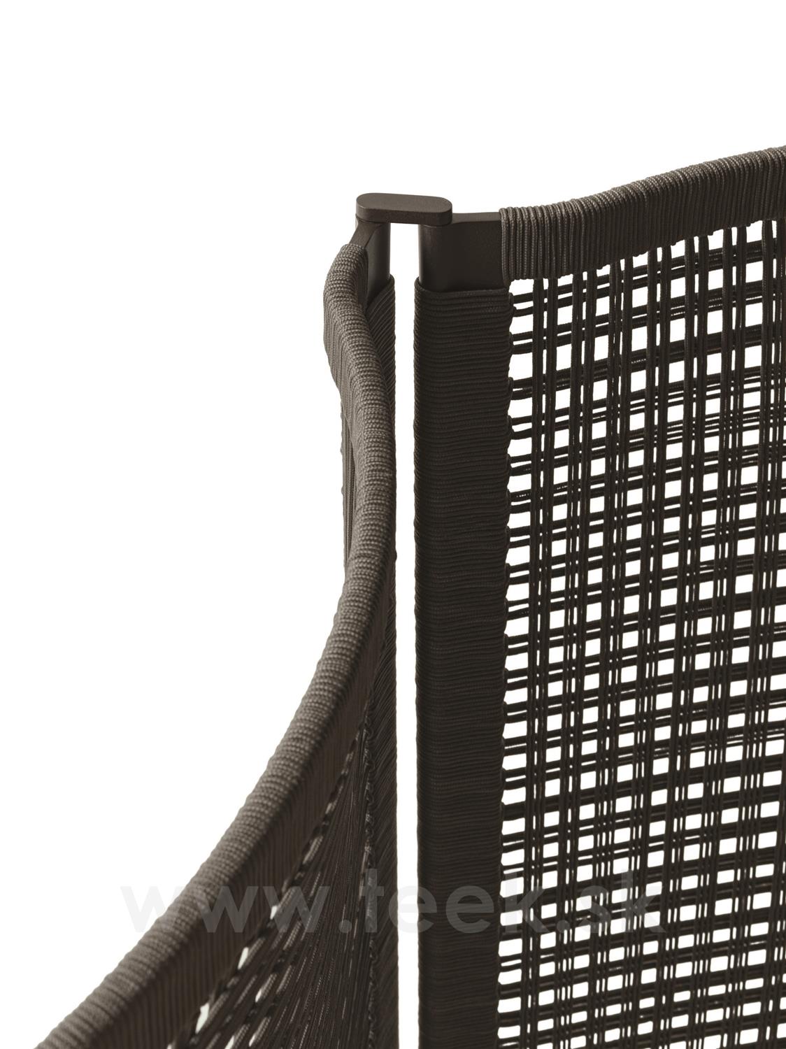 Elegantný paraván s patinovaným kovovým rámom a ručne tkanou polypropylénovou šnúrou v antracitovej farbe.