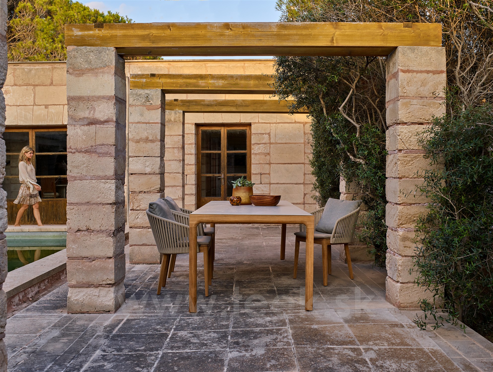 Jedálenský stôl Illum, Tribu, 267x100 cm, teak - keramika