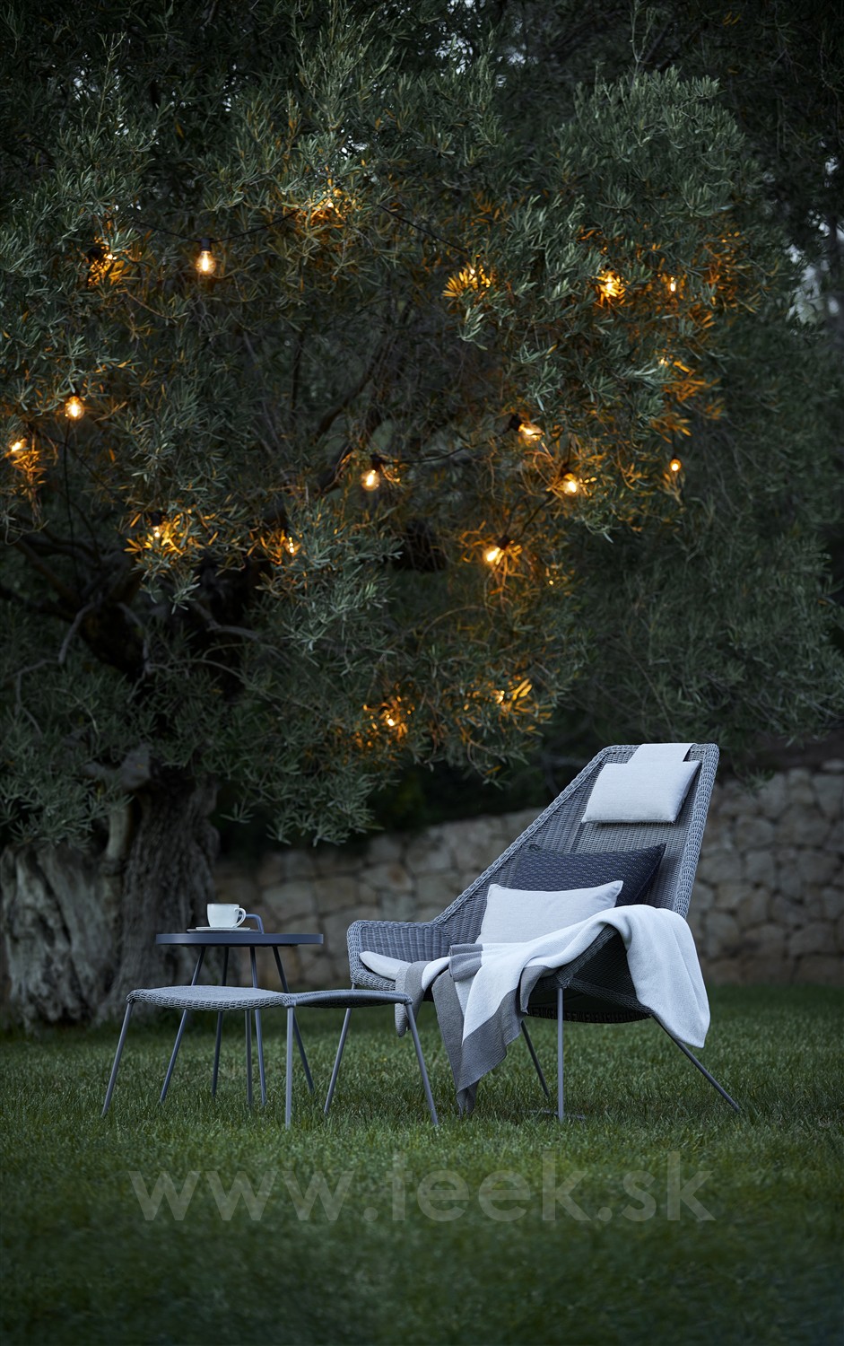 Rám podnožky je z lakovaného kovu. Výplet z umelého ratanu (Cane-line Weave). Rozmer: 72x36x36 cm.