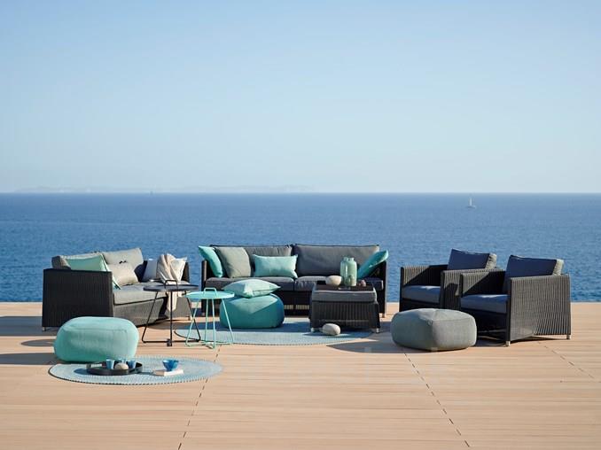 Podnožka Diamond, Cane-line, 70x70x40 cm, rám hliník, výplet umelý ratan farba graphite, sedák vonkajšia látka Natté grey