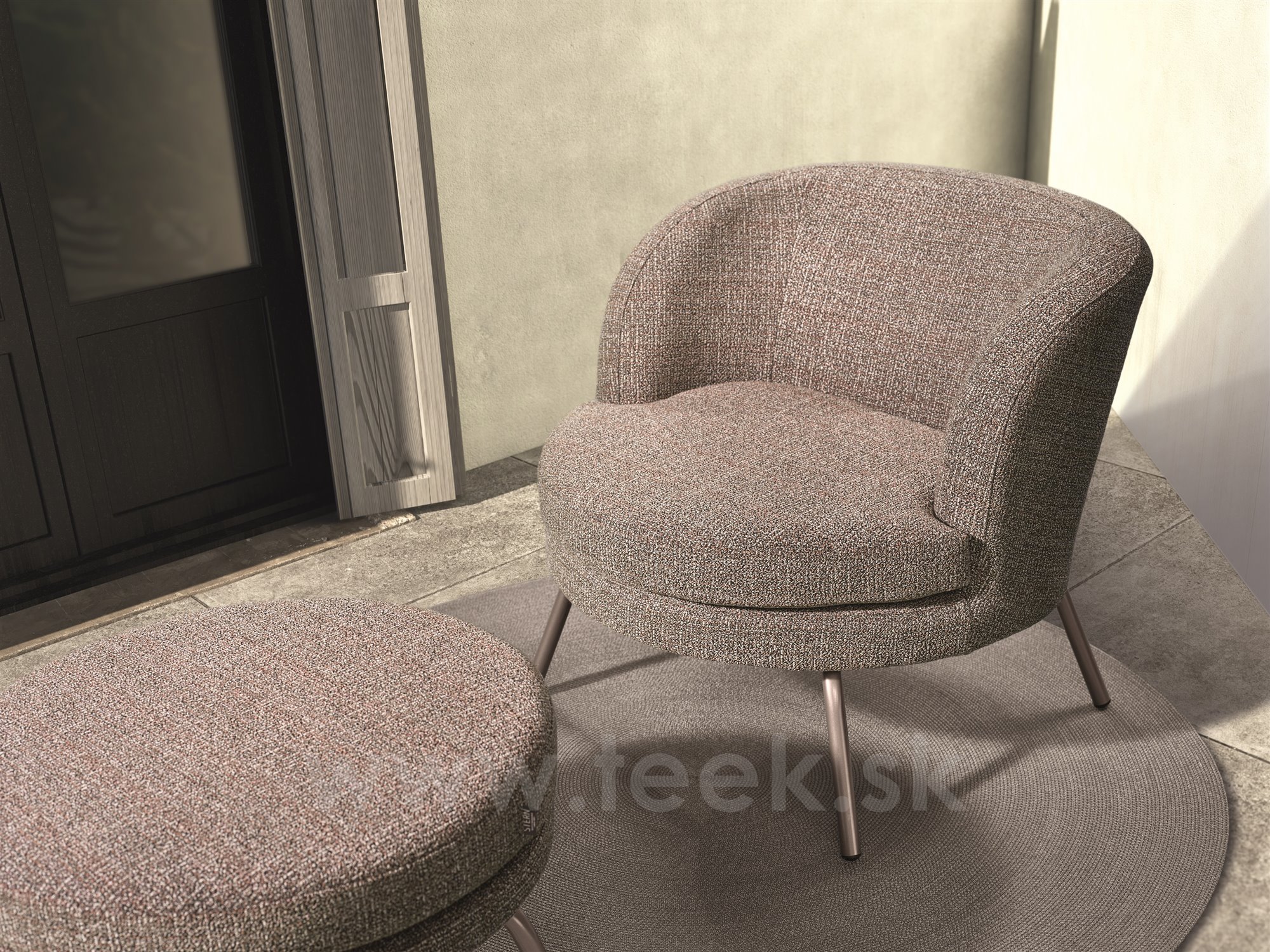 Podnožka Noa, Stern, priemer 64 cm, výška 40 cm, rám lakovaný hliník sand matt, vonkajšia látka farba Mélange rosé, rýchloschnúca výplň
