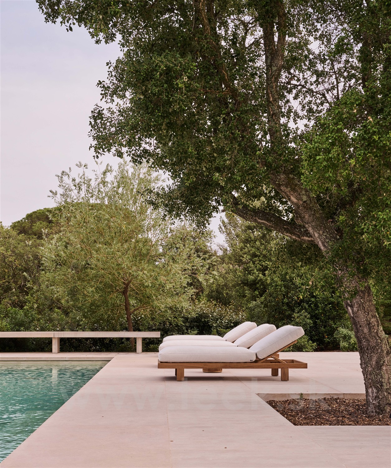 Toto lákavé lehátko je k dispozici ve 3 verzích: s pevnými dřevěnými nohami a bez nich a ve verzi s extra nohou, která je diskrétně vybavena integrovanými kolečky, což umožňuje snadnou mobilitu. Pohodlný výrazný polštář poskytuje luxusní zážitek z odpočinku.
