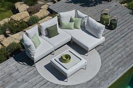 Rohová vonkajšia sedacia zostava Coco, 5-dielna, 260x170 cm/82x82 cm, rám lakovaný hliník šedobéžový (greige), vonkajšia látka farba podľa vzorkovníka