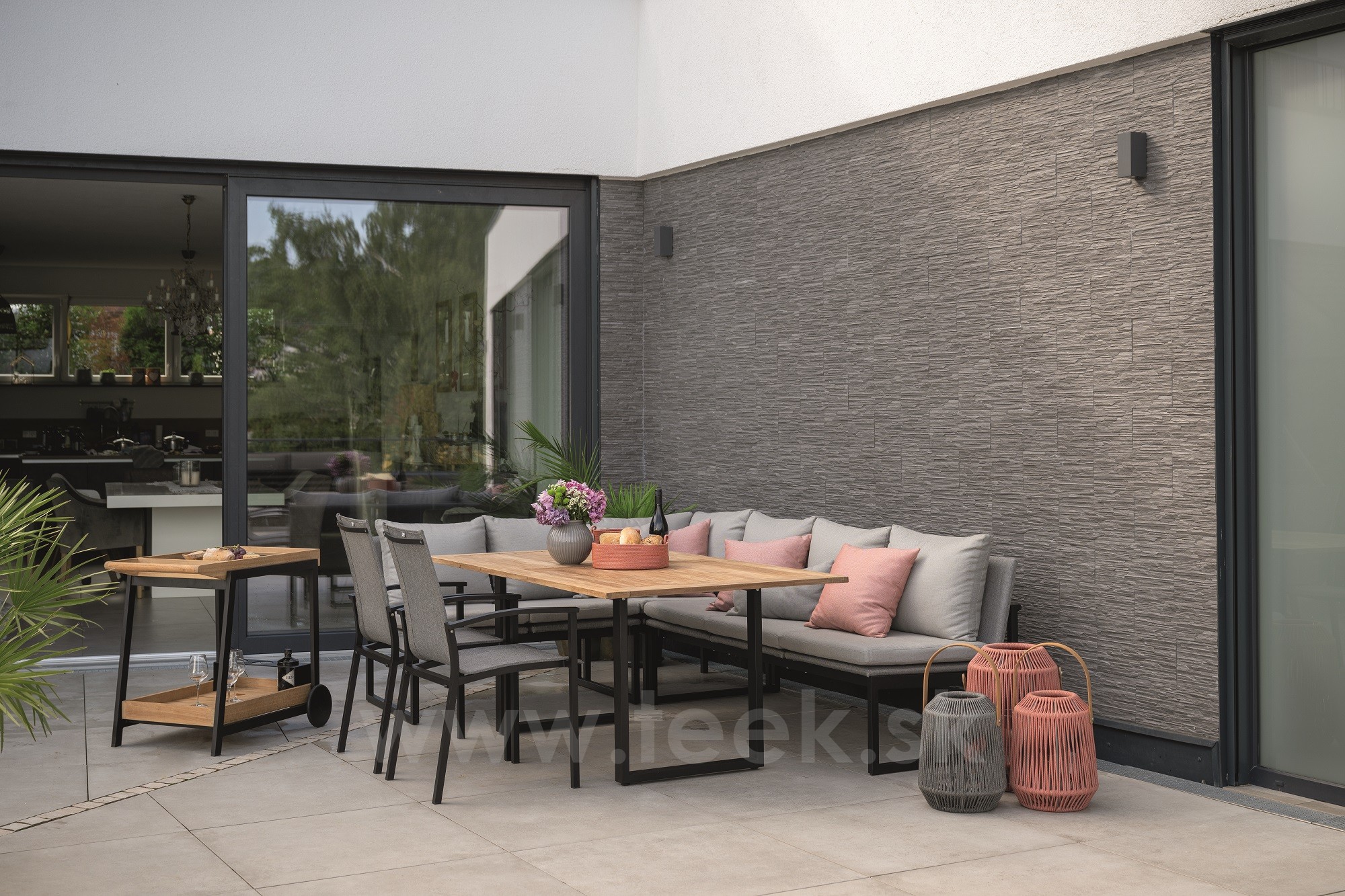 Rohový díl Tammo, Stern, 75x75x85 cm, rám lakovaný hliník šedočerný (anthracite), lankový výplet stone, venkovní látka granite grey