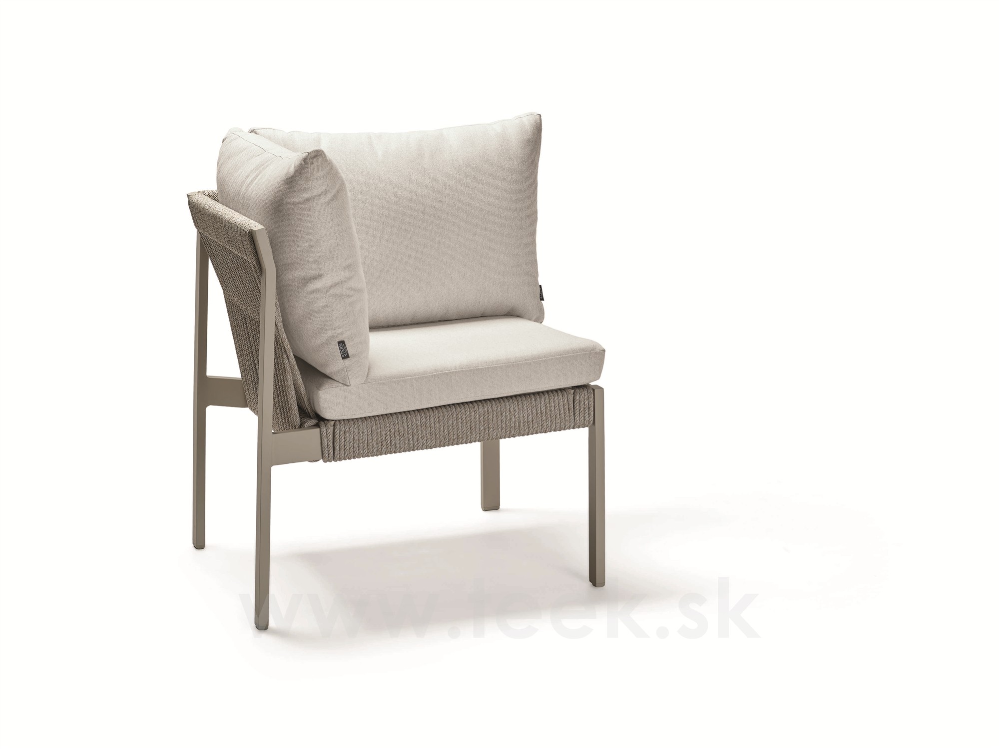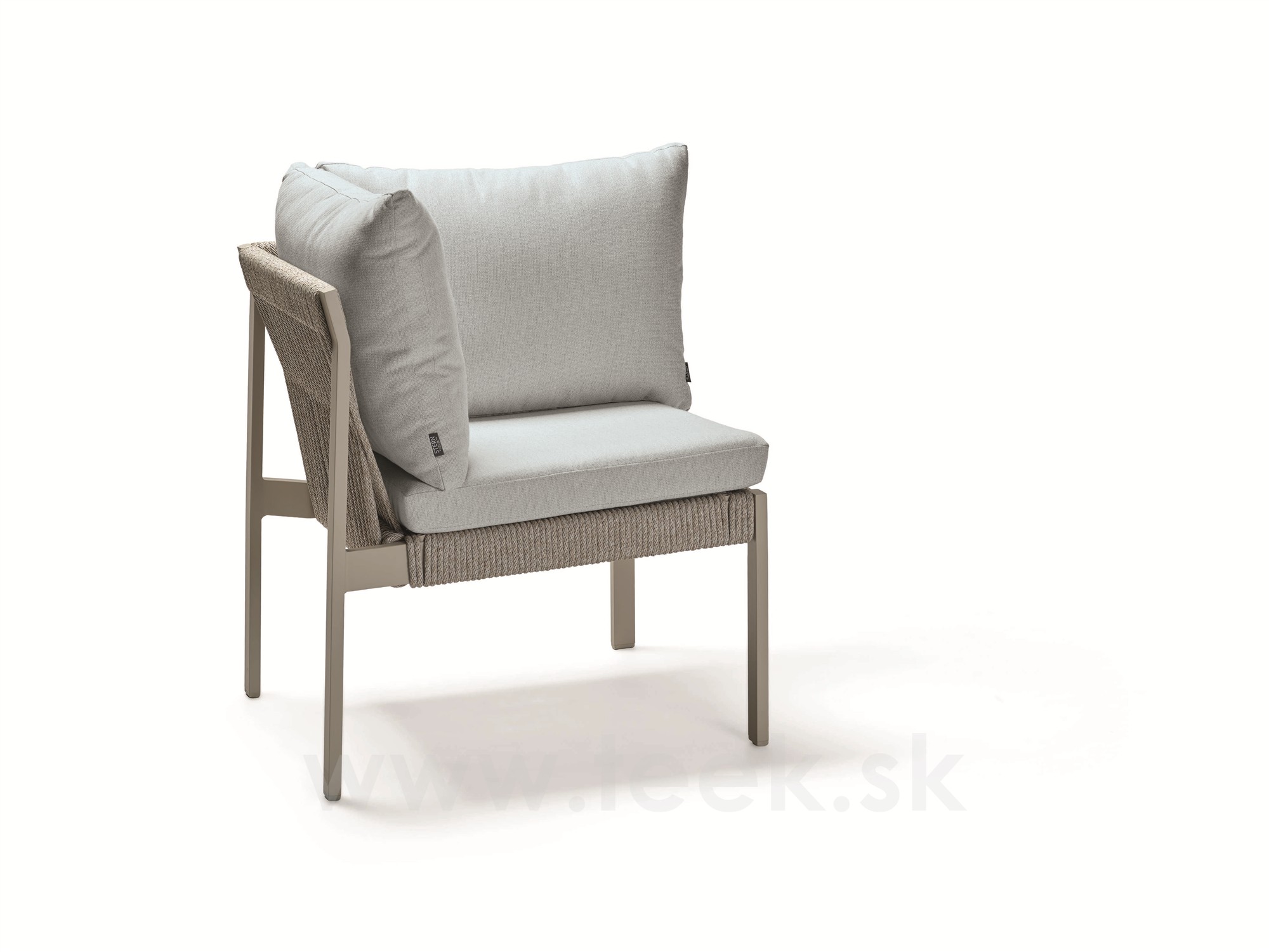 Rohový díl Tammo, Stern, 75x75x85 cm, rám lakovaný hliník greige, výplet lanko greige, sedáky 100% akryl Ivory