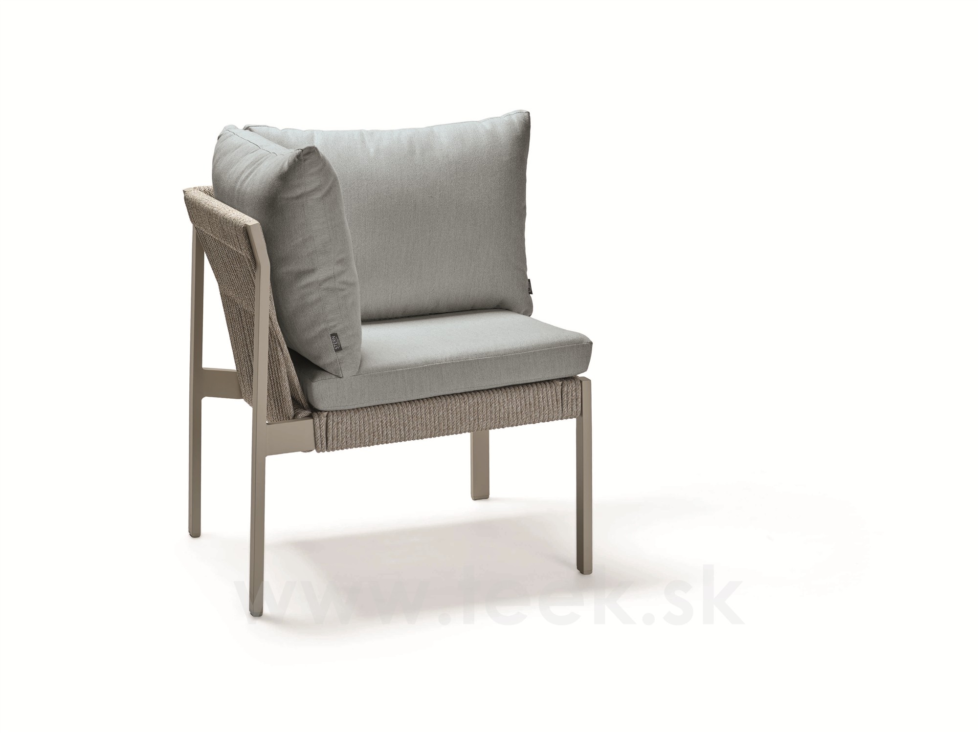 Rohový díl Tammo, Stern, 75x75x85 cm, rám lakovaný hliník greige, výplet lanko greige, sedáky 100% akryl Pearl Grey