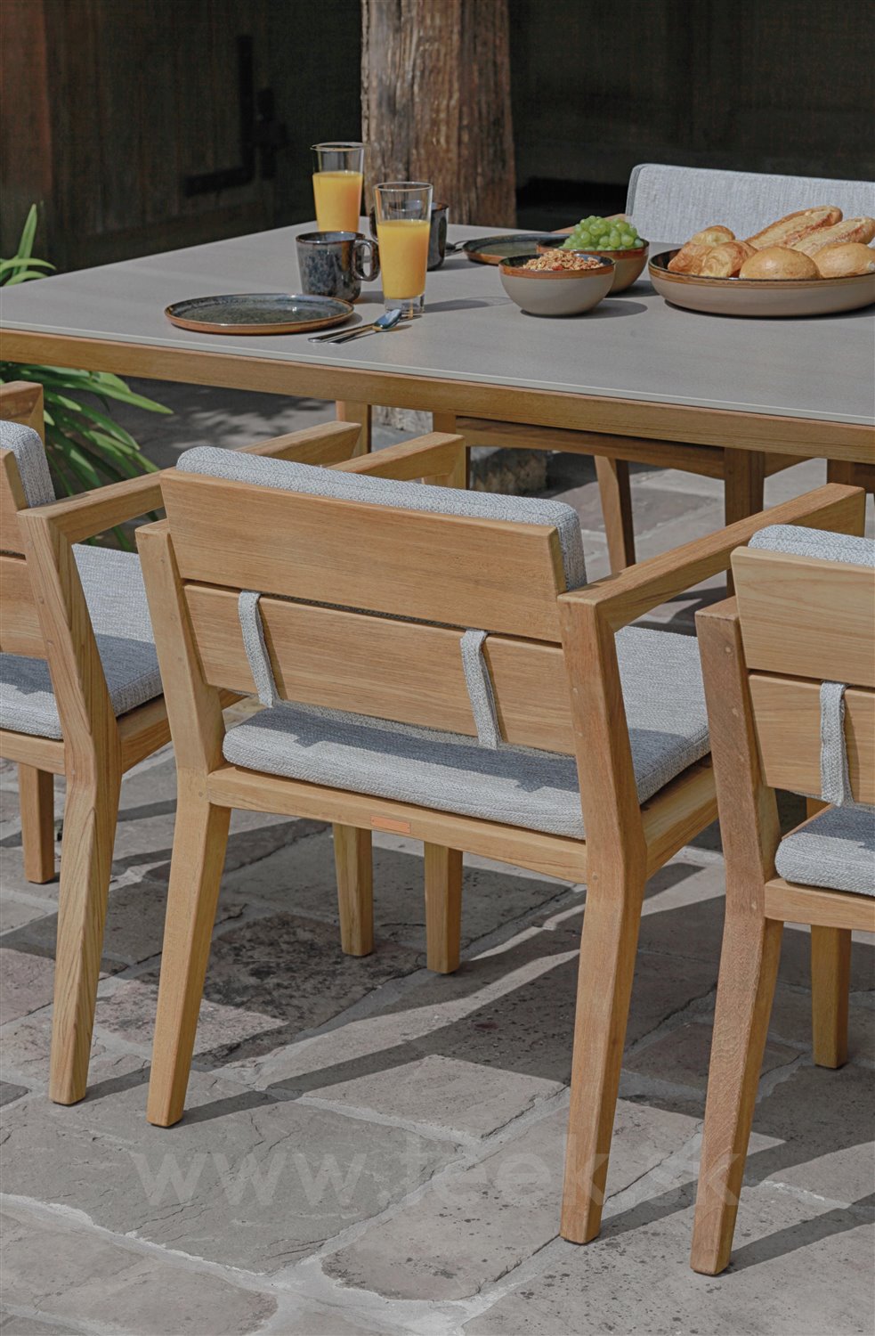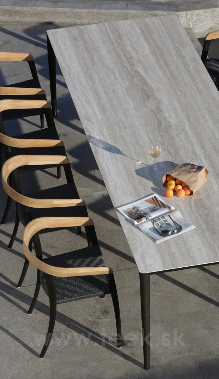 Kolekcia záhradných jedálenských stolov U-Nite od spoločnosti Royal Botania. Rám stola je profilovaný a má zaoblené krivky. Konštrukcia jedálenských stolov je vyrobená z lakovaného hliníka alebo teakového dreva. Stolové dosky sú vyrobené z keramiky alebo teakového dreva.