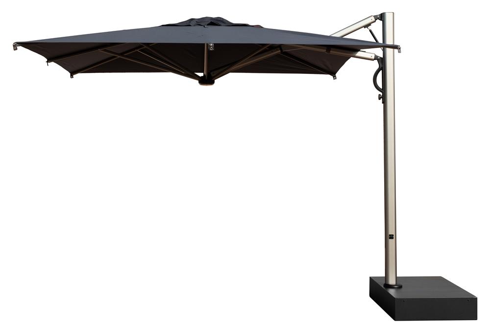 Slnečník s inovatívnym systémom otvárania a zatvárania s plynovou pružinou. Výsuvná konštrukcia umožňuje otváranie a zatváranie nad stolmi a stoličkami bez nutnosti premiestňovať nábytok. Moderný výrobok s hliníkovým rámom v titánovom vzhľade, vhodný do exkluzívneho prostredia.