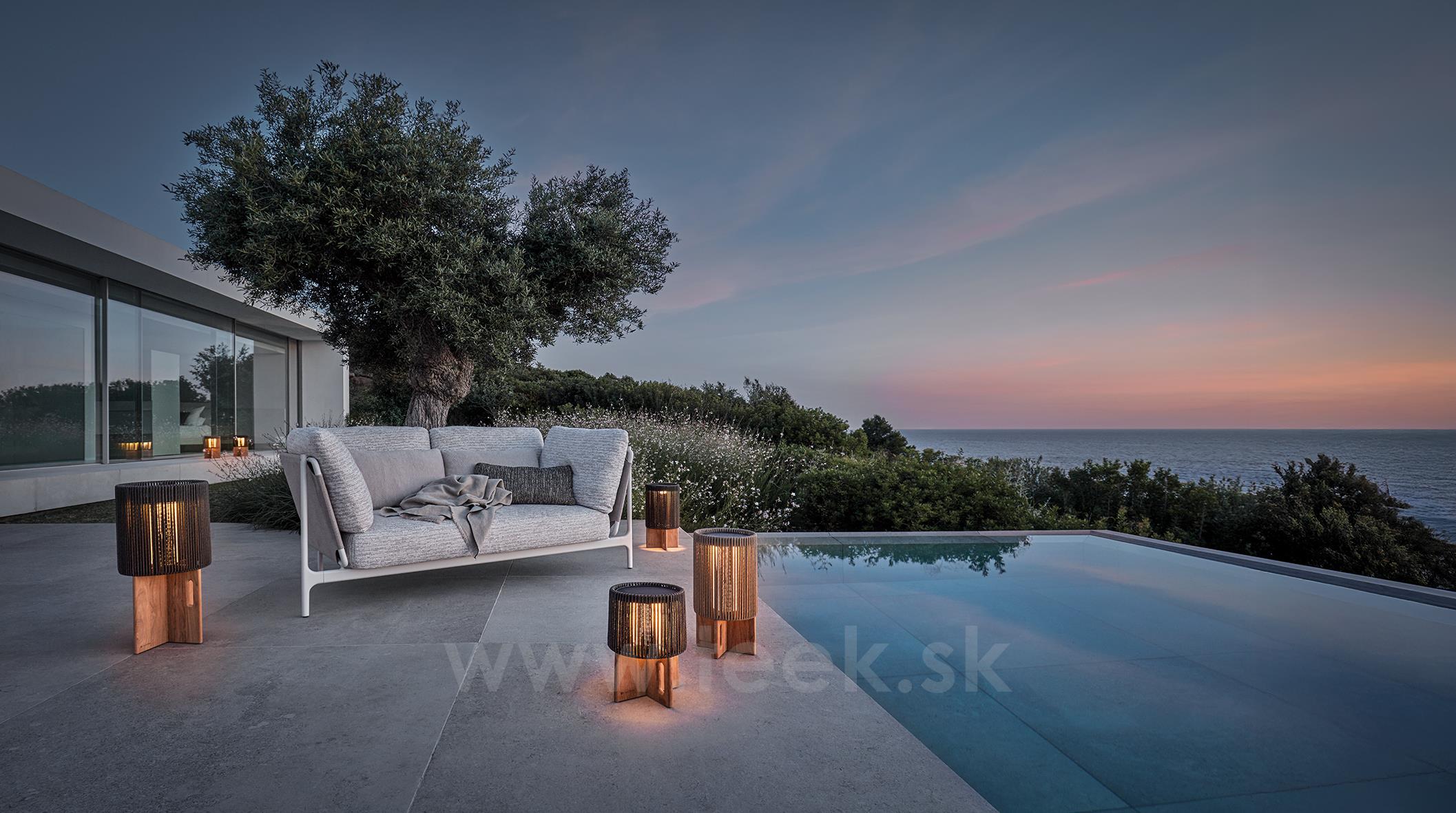 Sedáky: vonkajšia tkanina - farba podľa vzorkovníka, výplne vo vonkajšej kvalite.