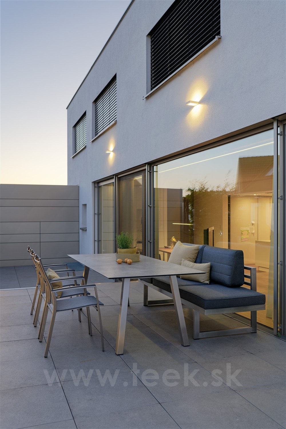 Stůl Interno, Stern, 220x100 cm, hliník čtvercový profil, deska teak