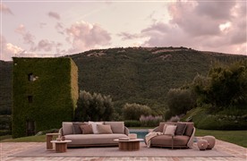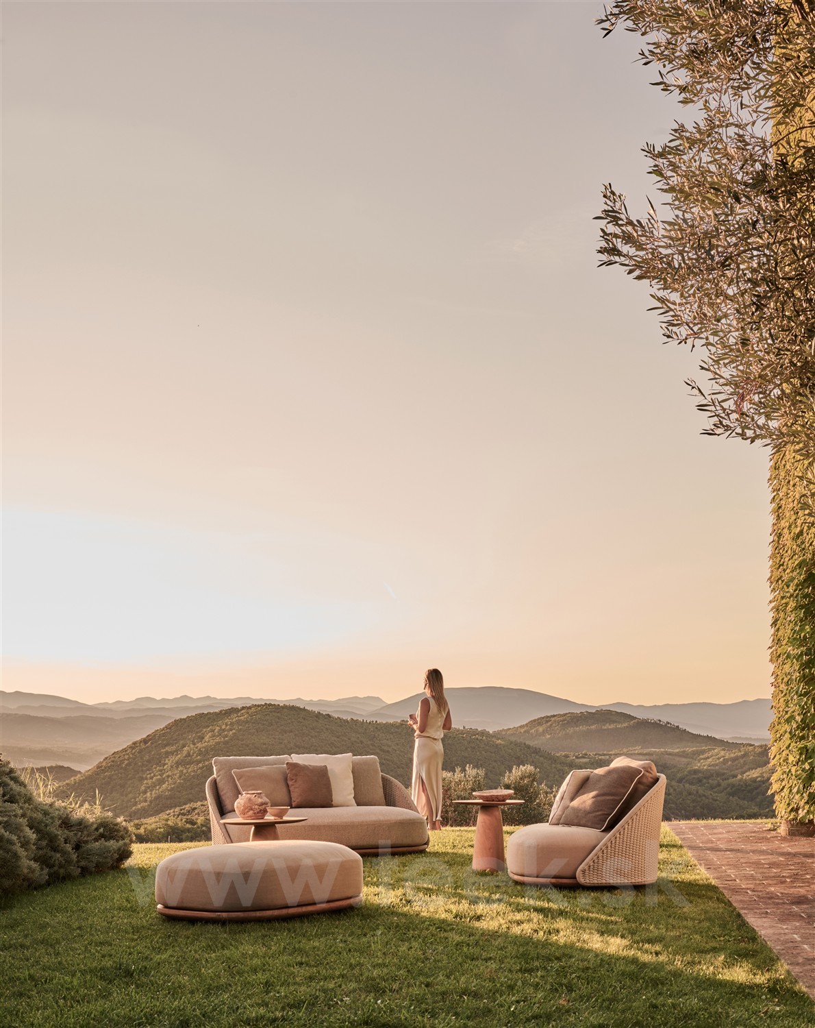 Venkovní relaxační nábytek Elio Sofa lze kombinovat s jídelním nábytkem Elio Dining a také lounge nábytkem Elio Lounge ze stejné kolekce.