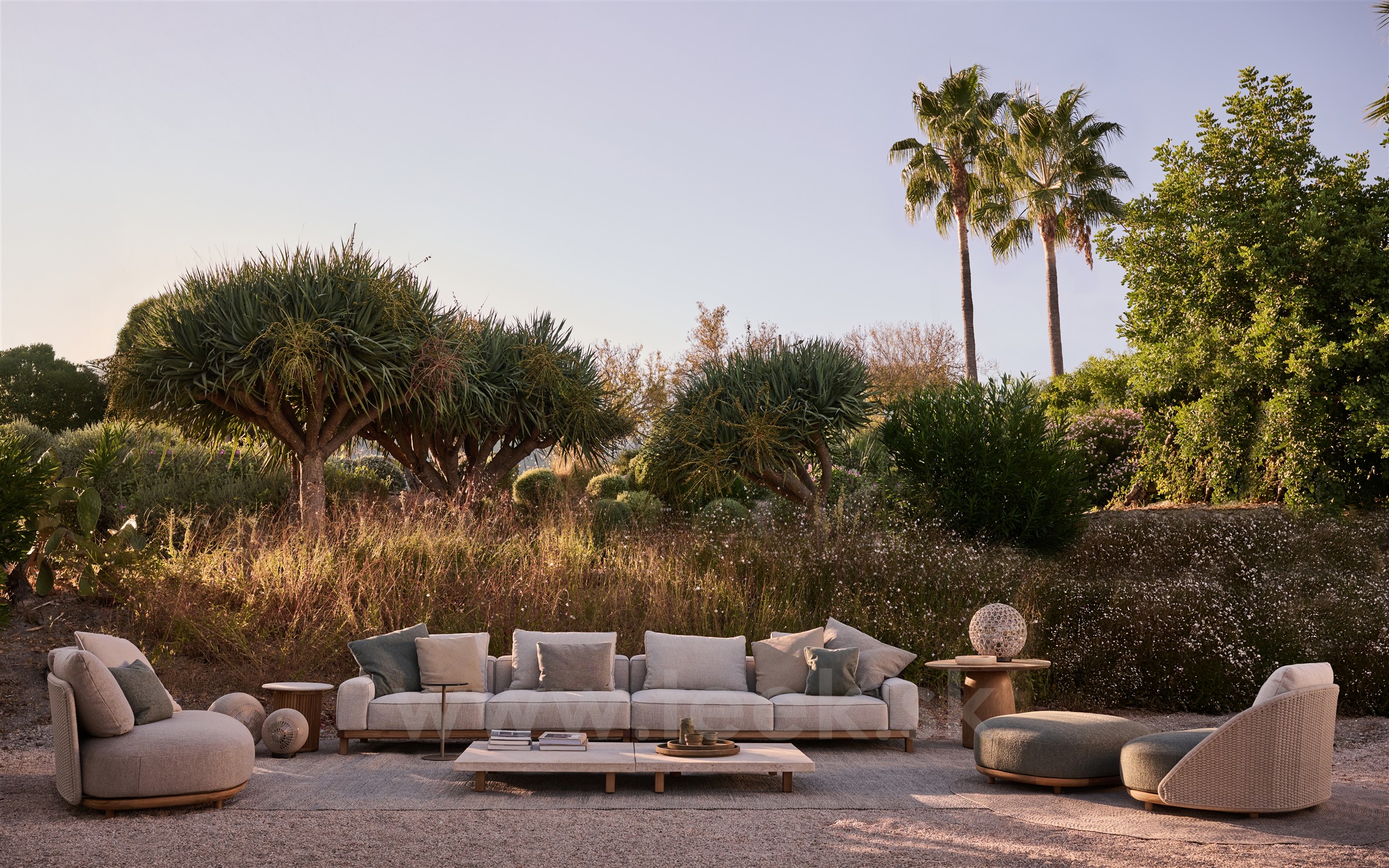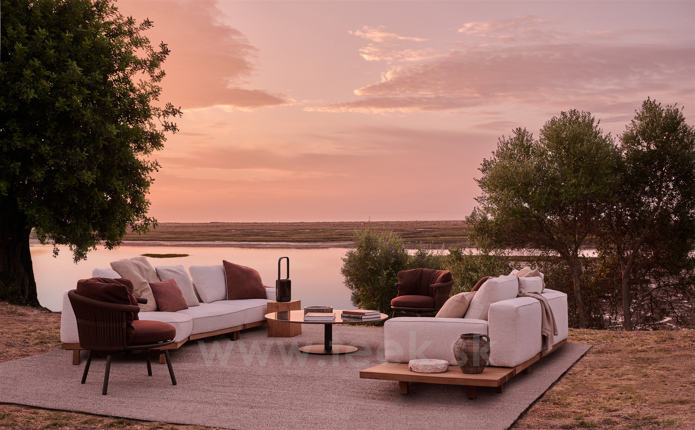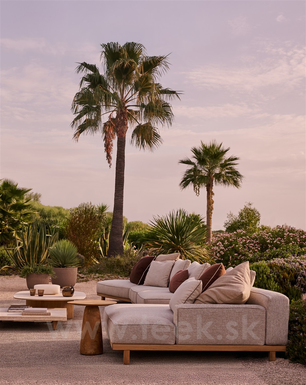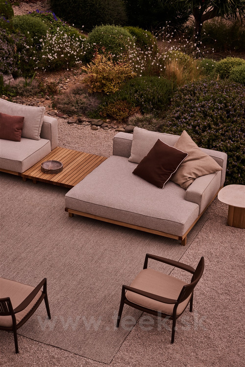 Luxusná modulárna pohodlná sedacia zostava z teaku.