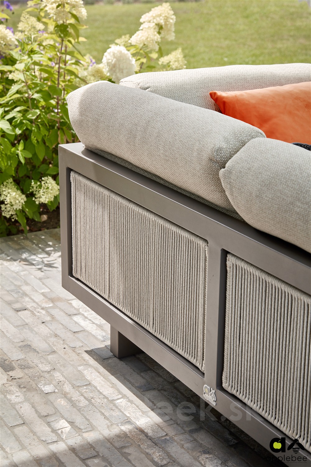 Ukončovací diel 2-miestny ľavostranný Santorini Rope, Apple Bee, 159x81,5x60 cm, rám hliník Quartz, výplet lanko, vonkajšia látka Olefin Natural Oak