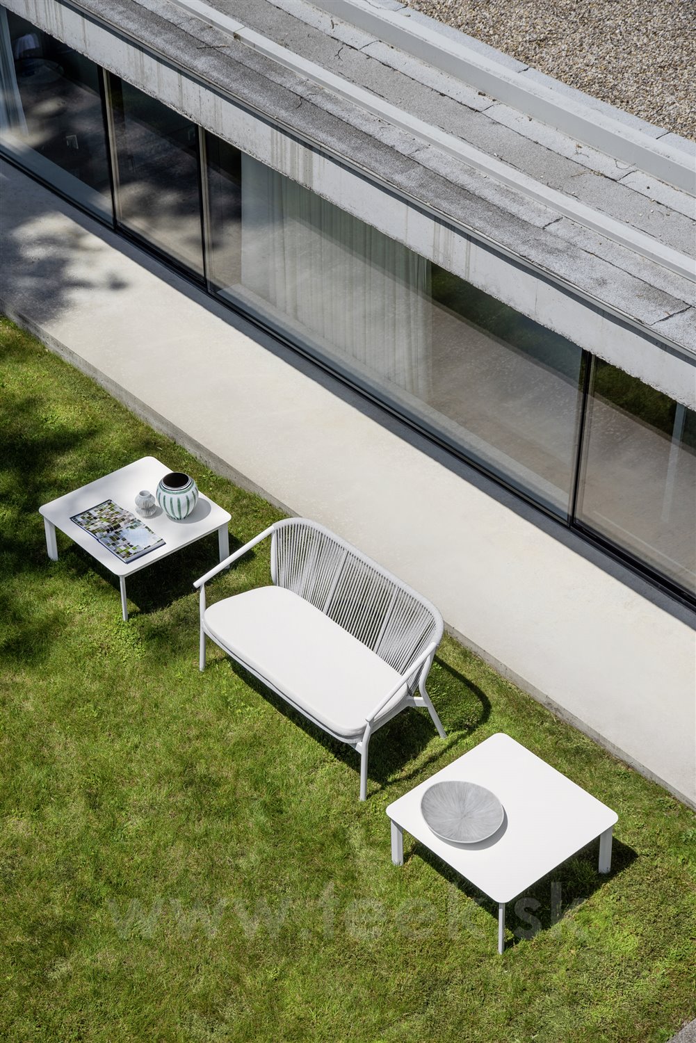 Rámy sedacieho nábytku sú vyrobené z hliníka, operadlo je vyrobené z drôteného výpletu a sedadlo je vyrobené z textilu.
