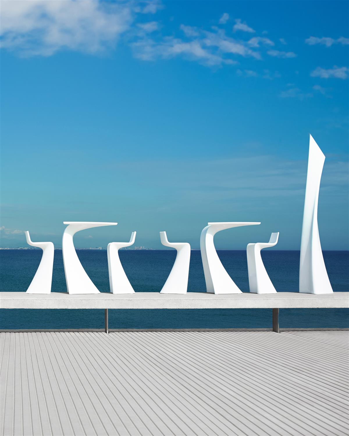 Dizajnové vonkajšie jedálenské, barové a nízke sedacie súpravy Wing od španielskej značky Vondom. Vhodné pre hotely a reštaurácie.