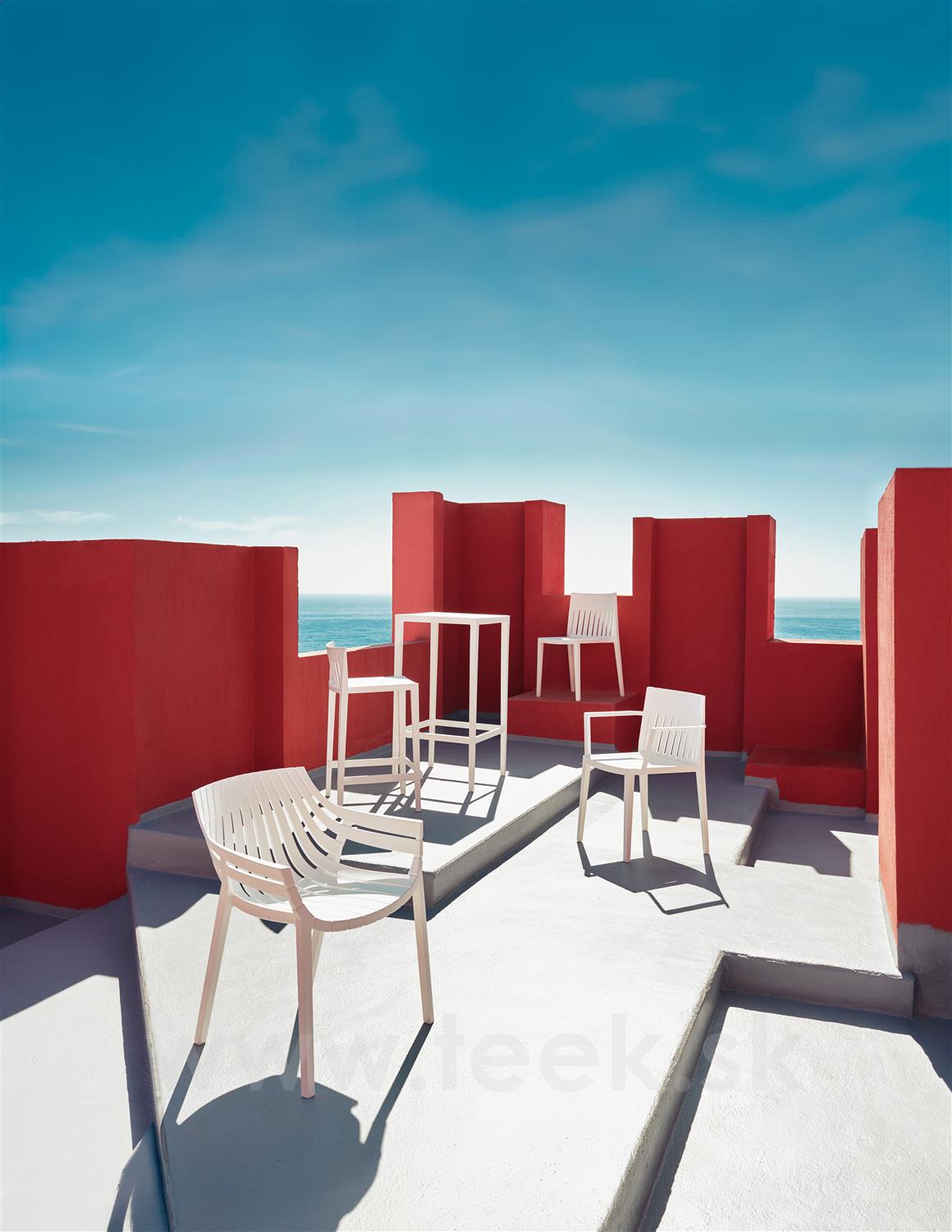 Zahradní jídelní a relaxační nábytek Spritz od španělské značky Vondom. Vhodné do hotelů a restaurací.