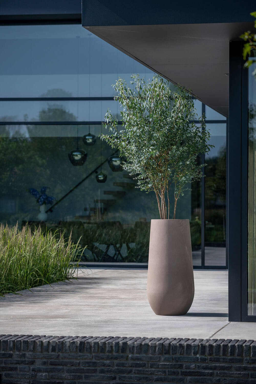 Vonkajší kvetináč okrúhly Nax L, Taupe (farba béžová taupe), kolekcia Natural, kompozit Fiberstone, priemer 50 cm x v 100 cm, objem cca 158 l