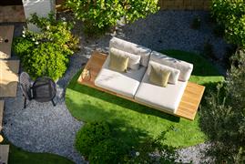 Vonkajšia pohovka s úložnými stolíkmi z kolekcie Truro belgickej značky Jati Kebon.