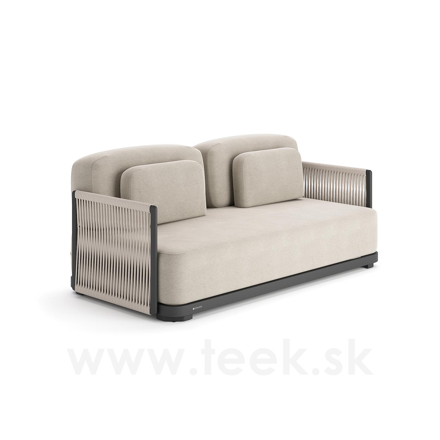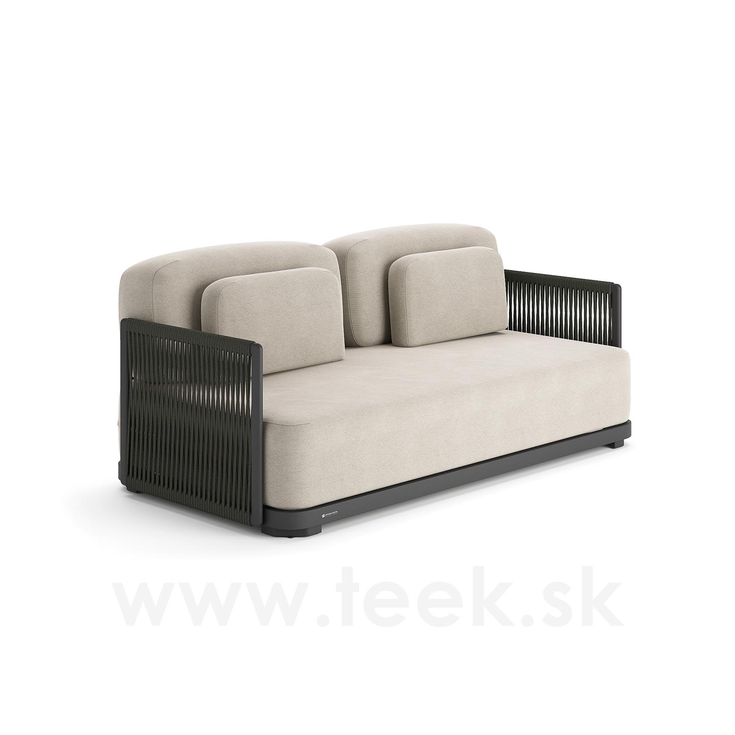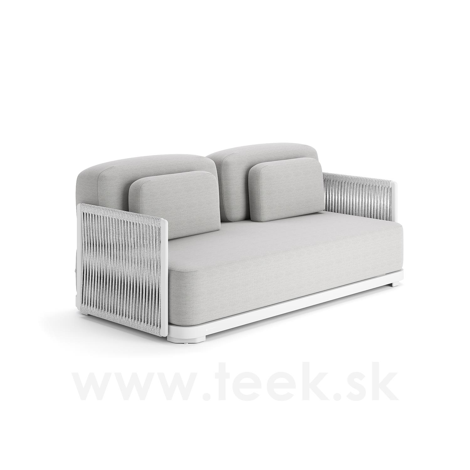 2-miestna pohovka Durbuy, Jati Kebon, 180x90x61 cm, hliníkový rám, káblový výplet, vankúše na sedenie z vonkajšej tkaniny Sunbrella, farba podľa vzorky